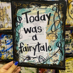 Music teacher, Elexa, of Lexicon of Love hand creates each piece in the shop in Atlanta. "Today was a fairytale is inspired by the Taylor version of Taylor Swift's song. The original painting shown in the pictures is on canvas and uses sheet music, vintage book pages, acrylic paints, and black sharpie.