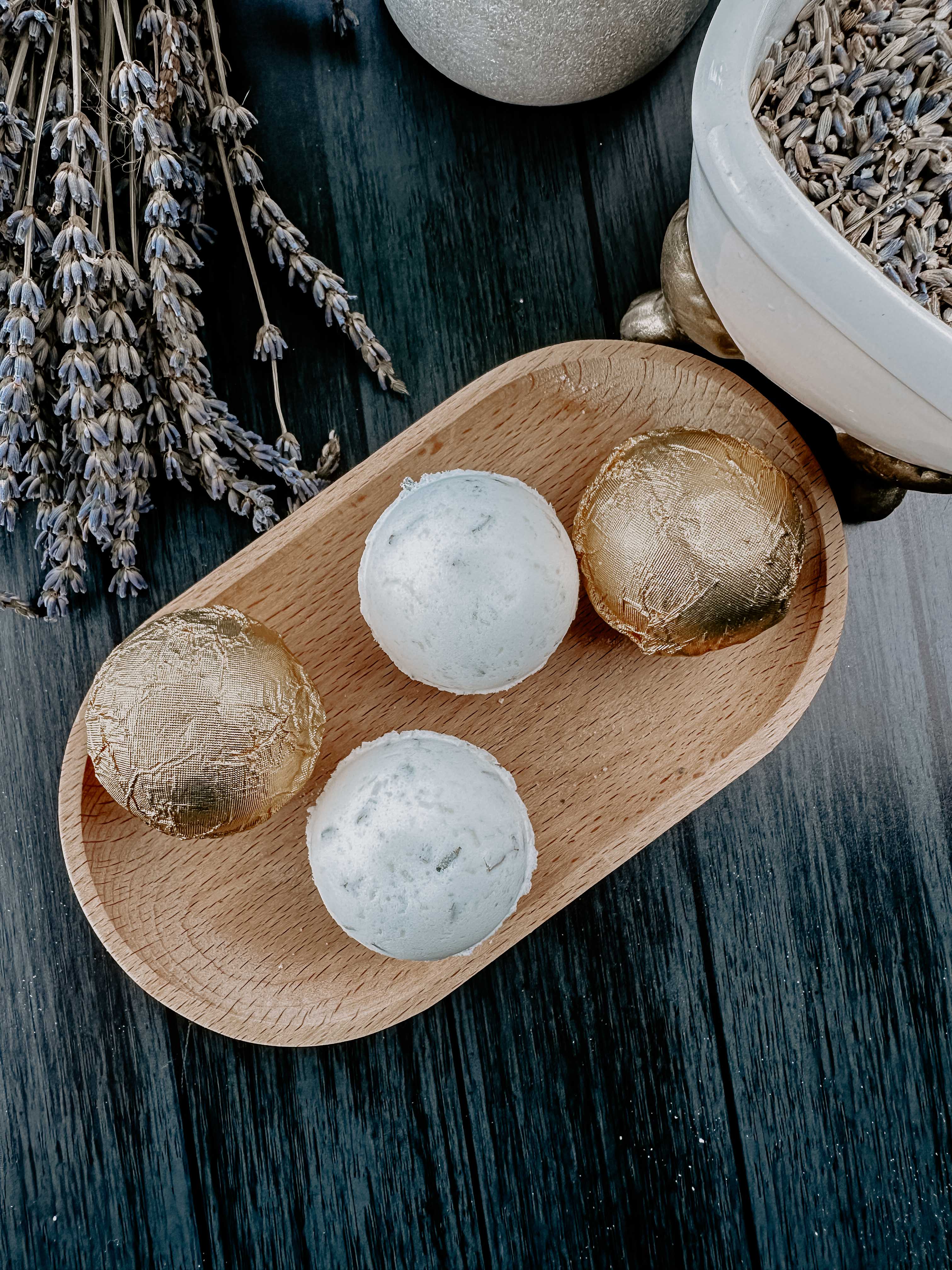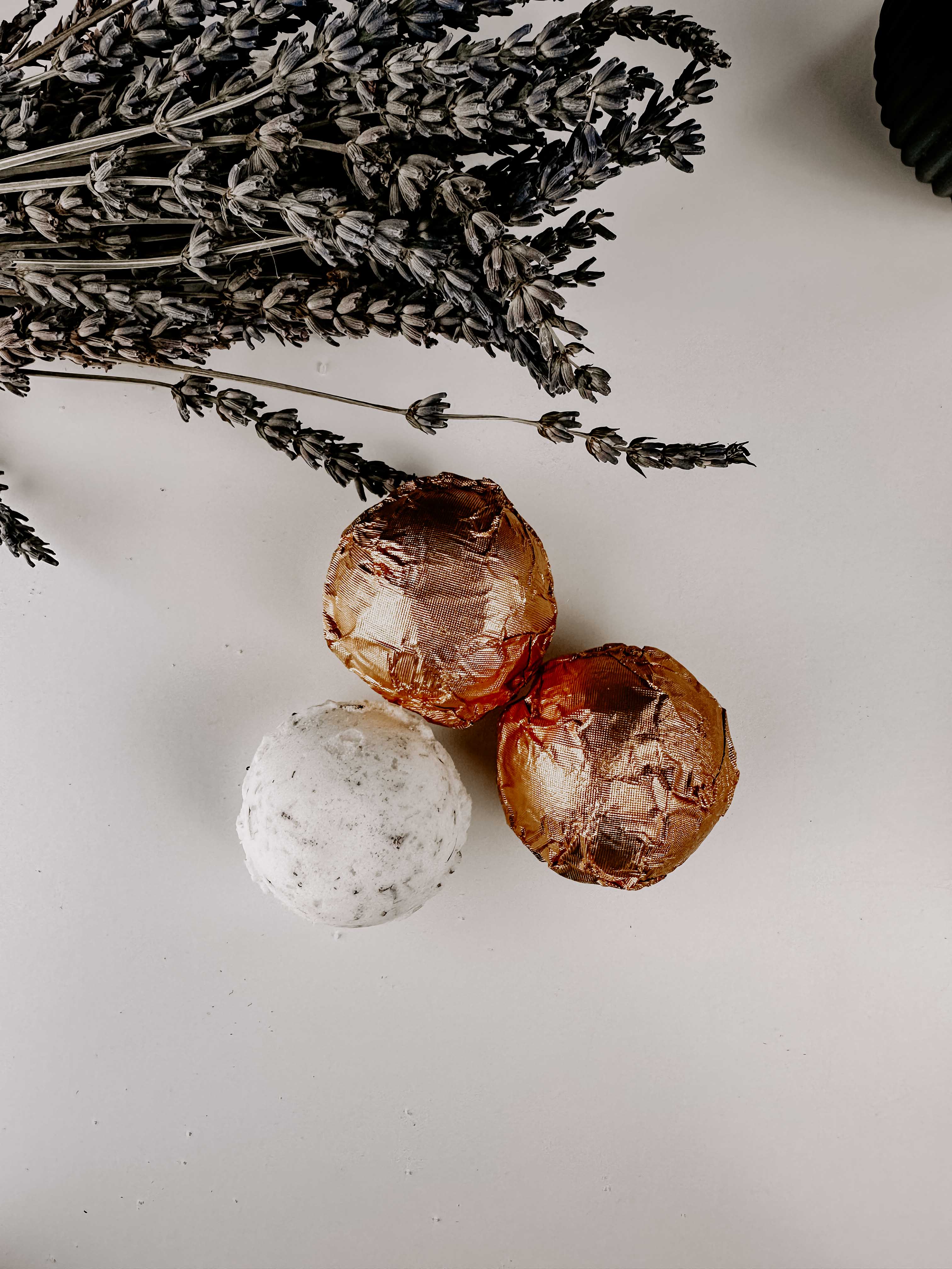 These little guys are the smaller version of our Fizzed Bath Bombs and are beautifully wrapped in gold foil. Our Lavender Fizzed Bath Truffles boast mineral-rich ingredients that detoxify and comfort your body. The calming lavender aroma helps to harmonize your mind, while the almond oil enrichment provides your skin with essential nourishment and hydration.