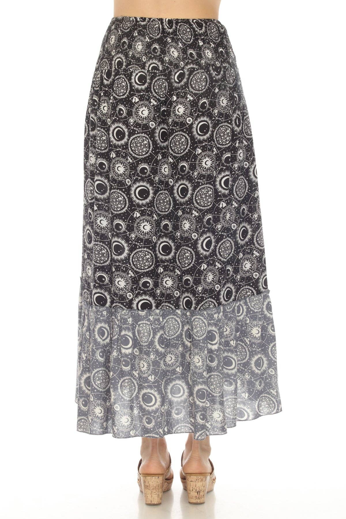 Float through your day with cosmic grace in the Celestial Slit Ruffled Maxi Skirt. This flowing skirt is full of movement and magic, perfect for dreamy days and starry nights. The high slit adds a flirty touch, while the ruffled hem brings boho romance to every step.