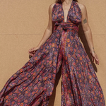 Hippie Bohemian Wide Leg Silk Jumpsuit