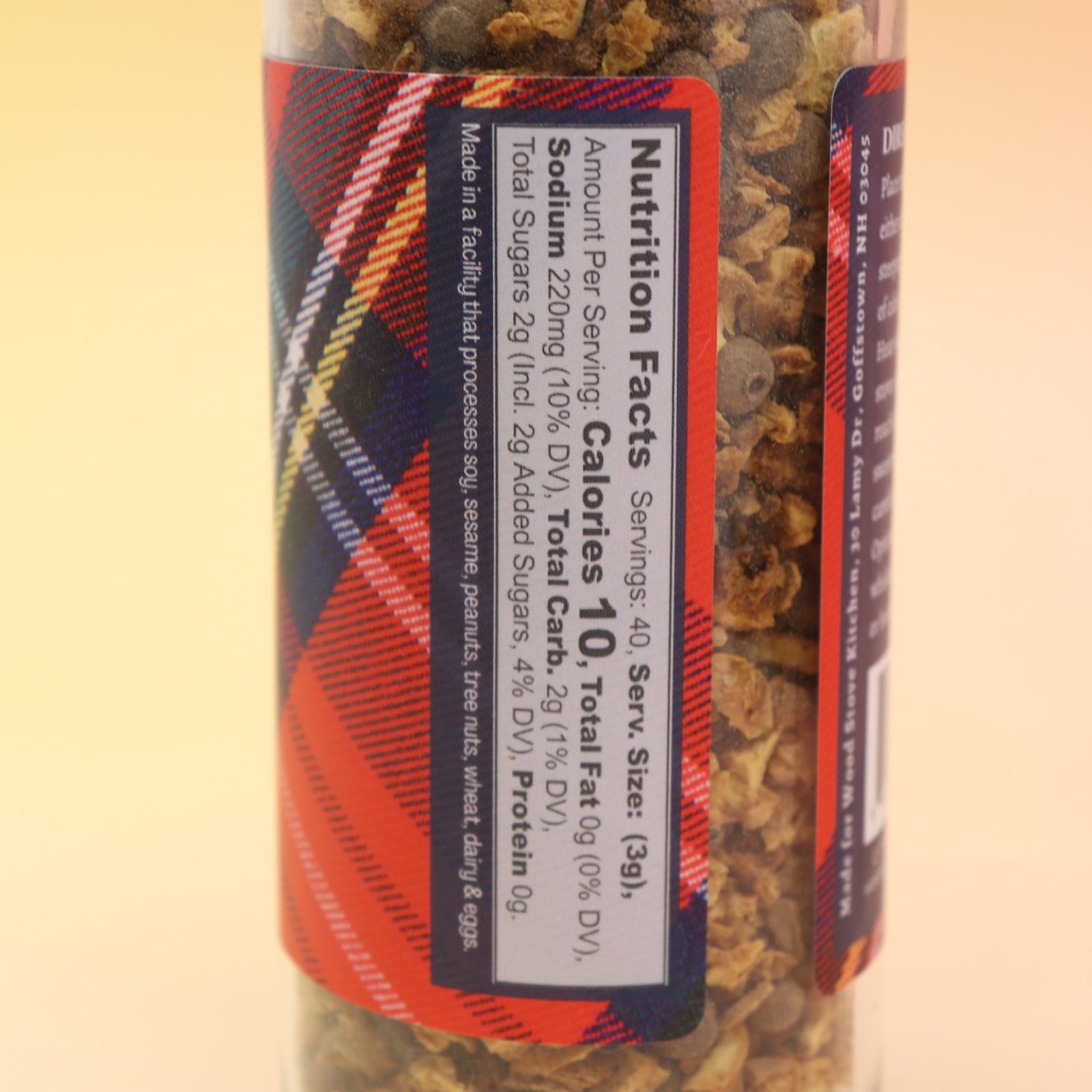 This spice blend only contains the finest dried cinnamon, cloves, allspice, and orange zest. They are slowly dried to retain maximum amounts of flavor. These spices are all packed into a 12 oz sealable jar with a flannel pattern label containing all the info you need, including how to use them!