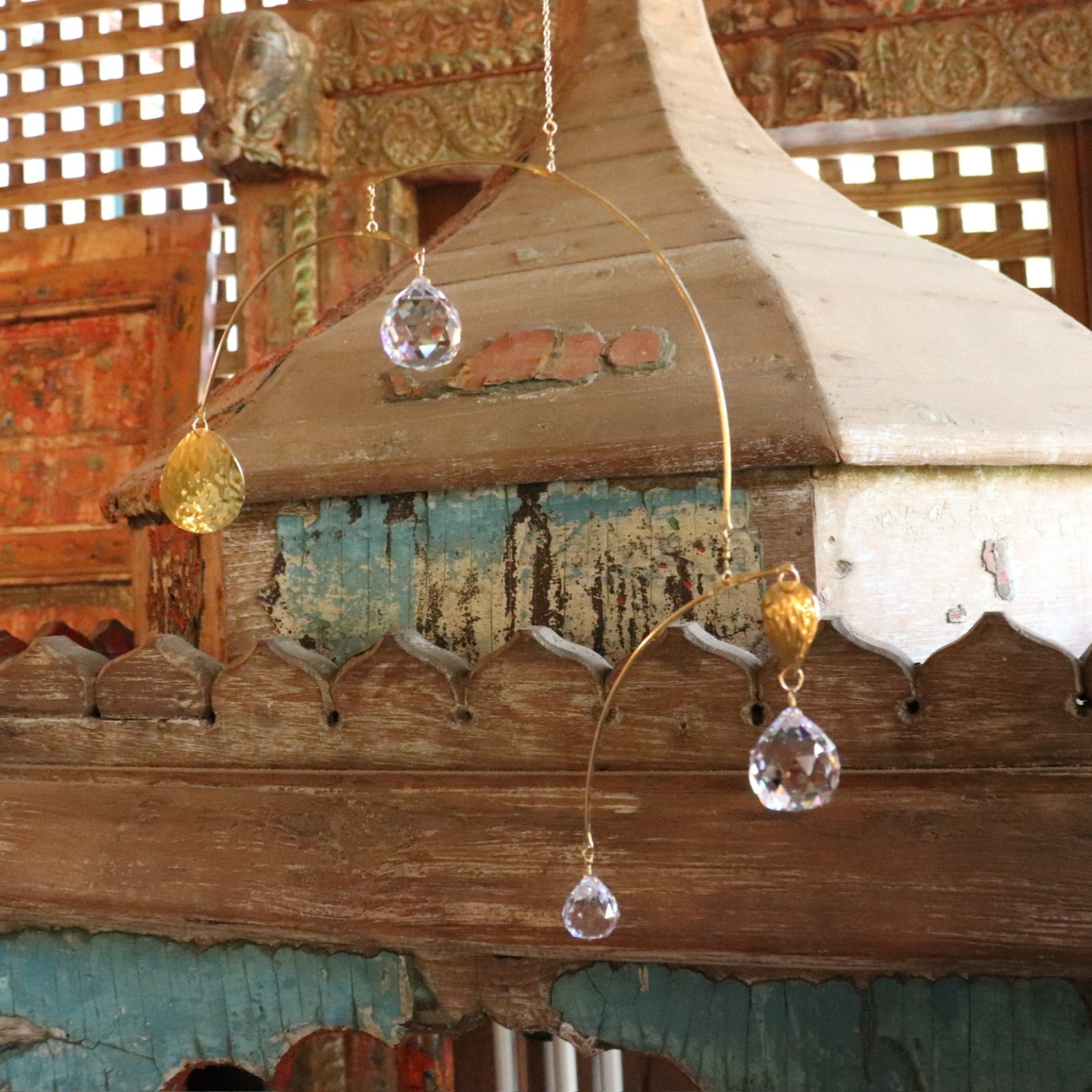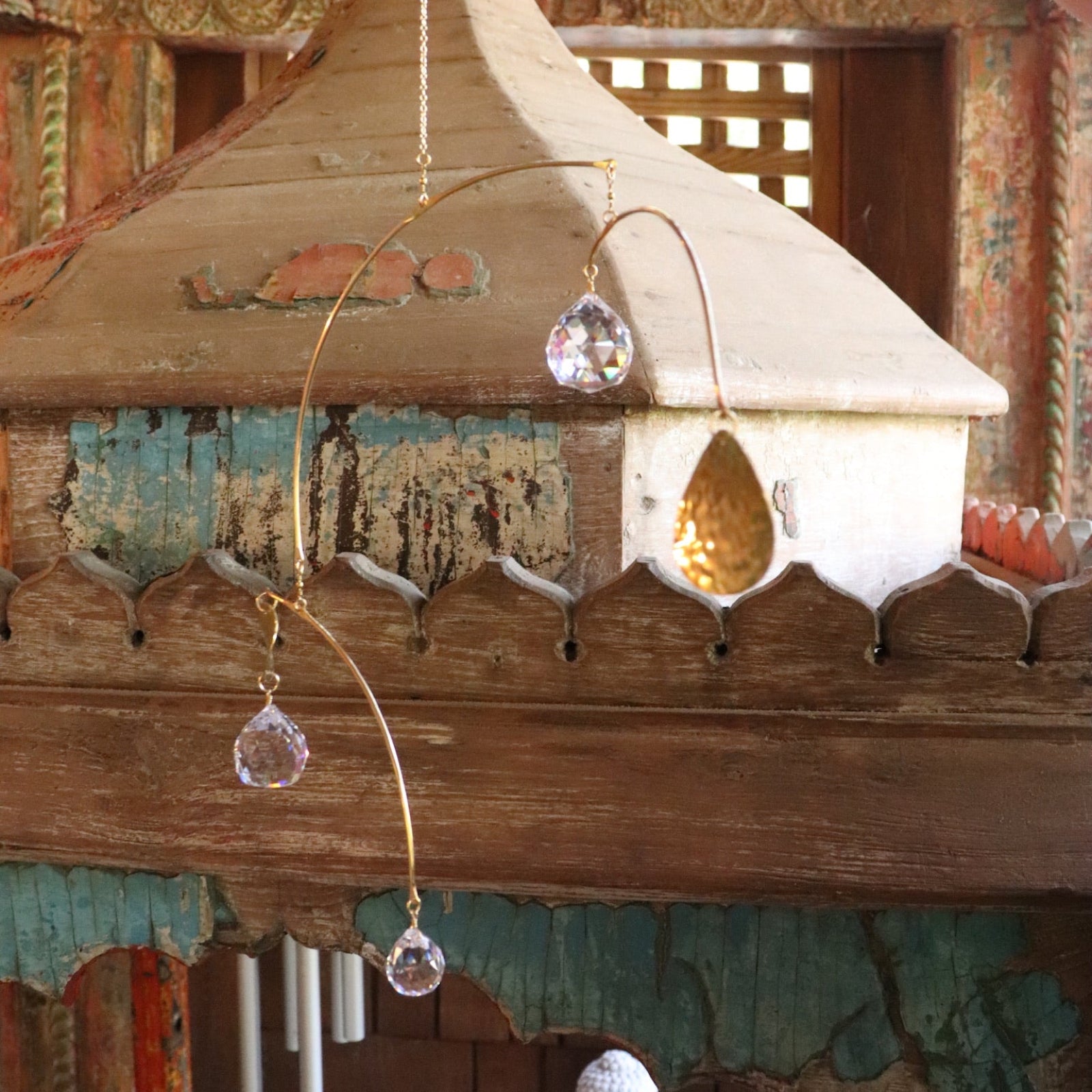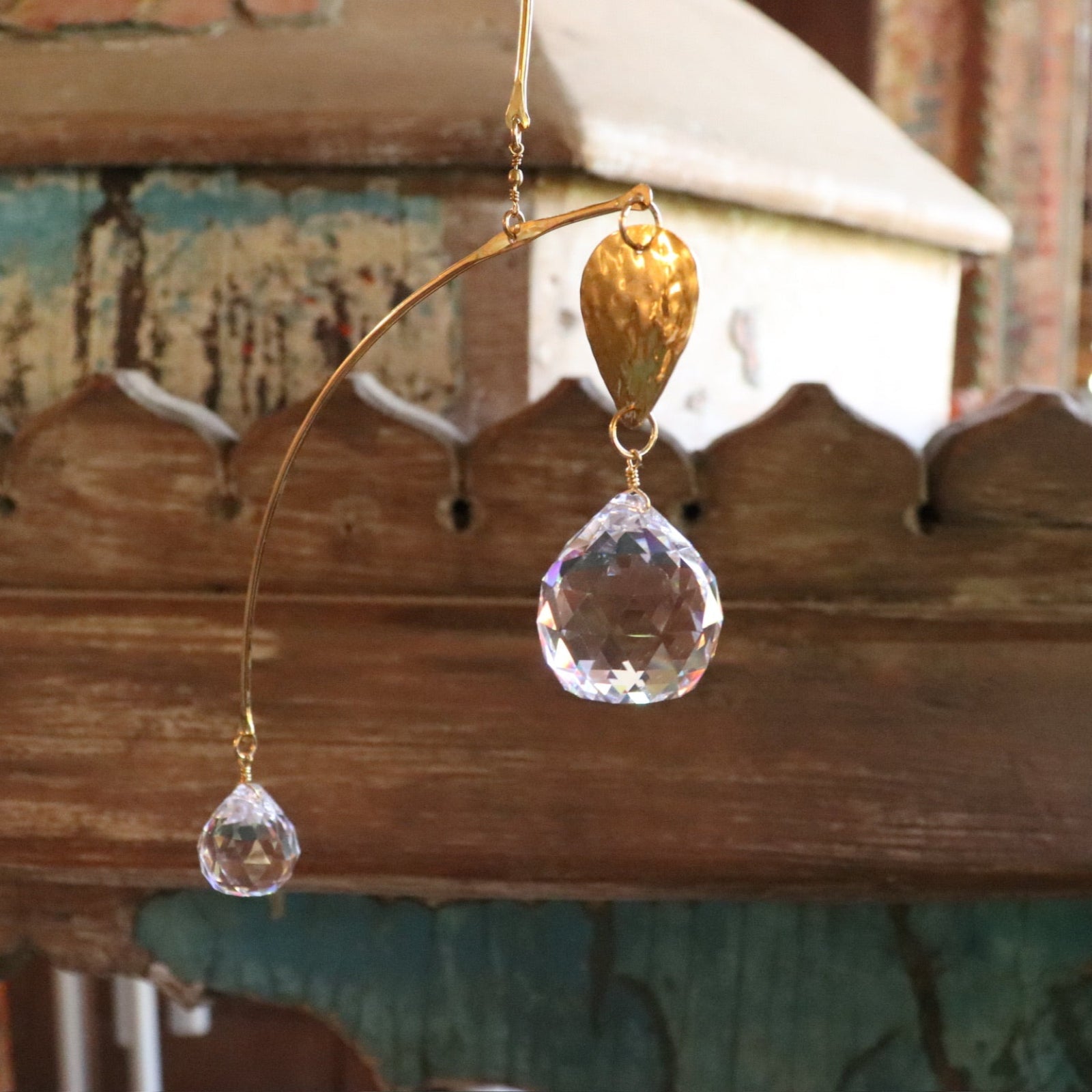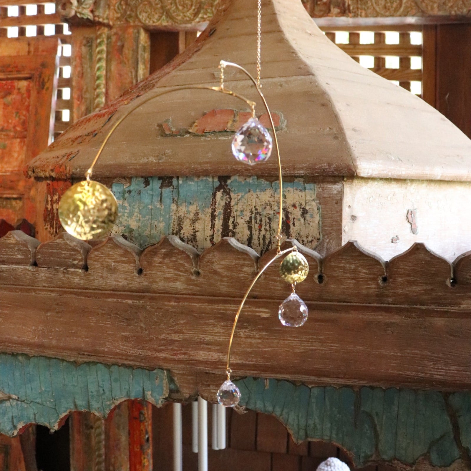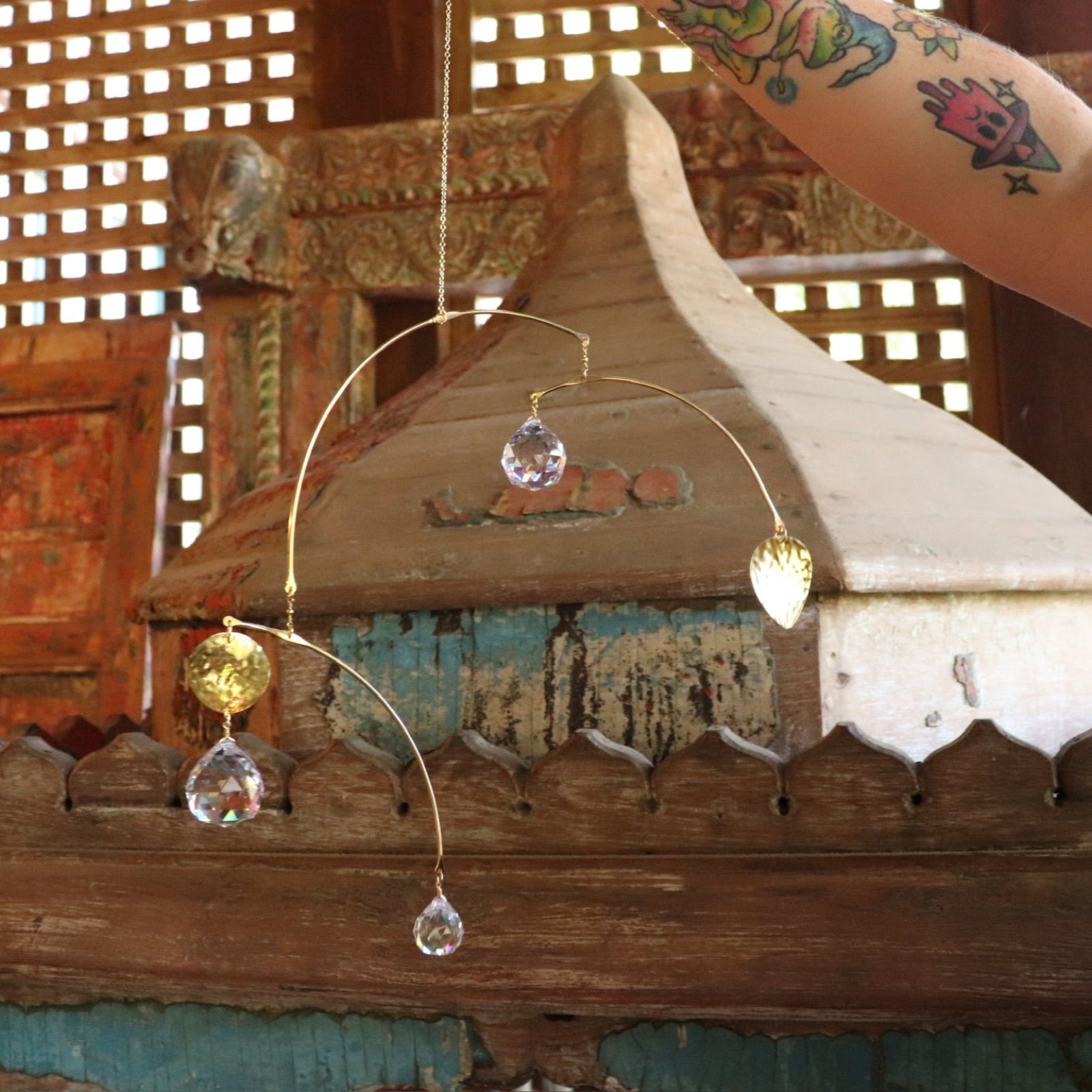 Crafted from brass with swivels at every joint, each piece moves freely and independently for a whimsical dance in the air. Standing 13 inches tall (22 inches including the chain) and 13 inches wide, it fits perfectly anywhere. Handmade with care in Ridgewood, NY—each crystal sparkles at 0.9 by 1.2 inches. Let the magic begin!