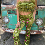 Get ready to groove and show off your style with the Feather Crop Top and Stretch Flared Pants Set! Perfect for concert nights or whenever you want to stand out.