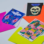 A single mystery card from the Rainbow Heart Tarot pulled from the deck at random. Each card comes in a 4x5.5" hand-stamped fluorescent envelope. Perfect for intention-setting, Birthdays, Saturn Returns and other special occasions.