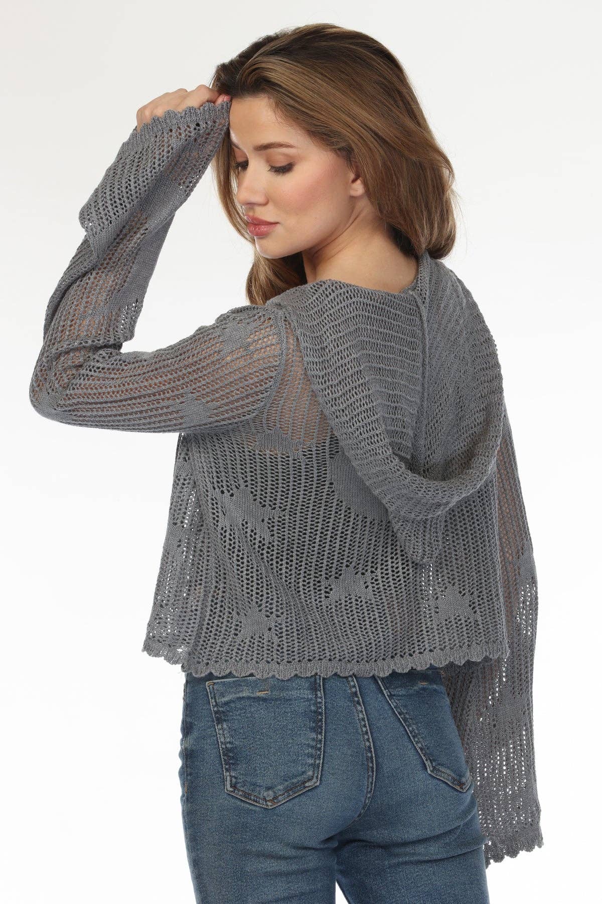 Style Tip: Pair your Celestial Lace-Knit Hoodie with wide-leg jeans and layered necklaces for a relaxed boho vibe, or throw it over a floral dress for a whimsical twist.