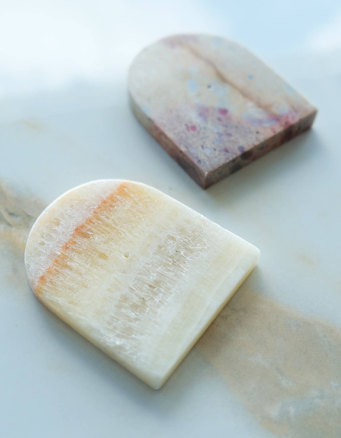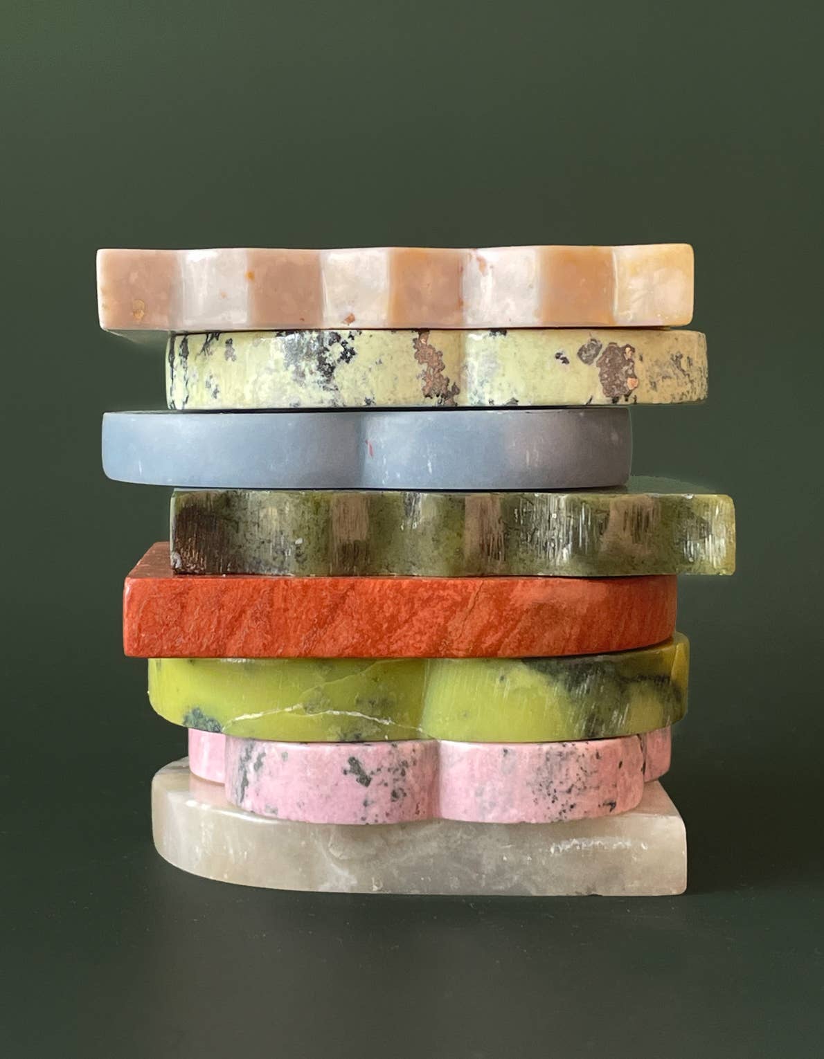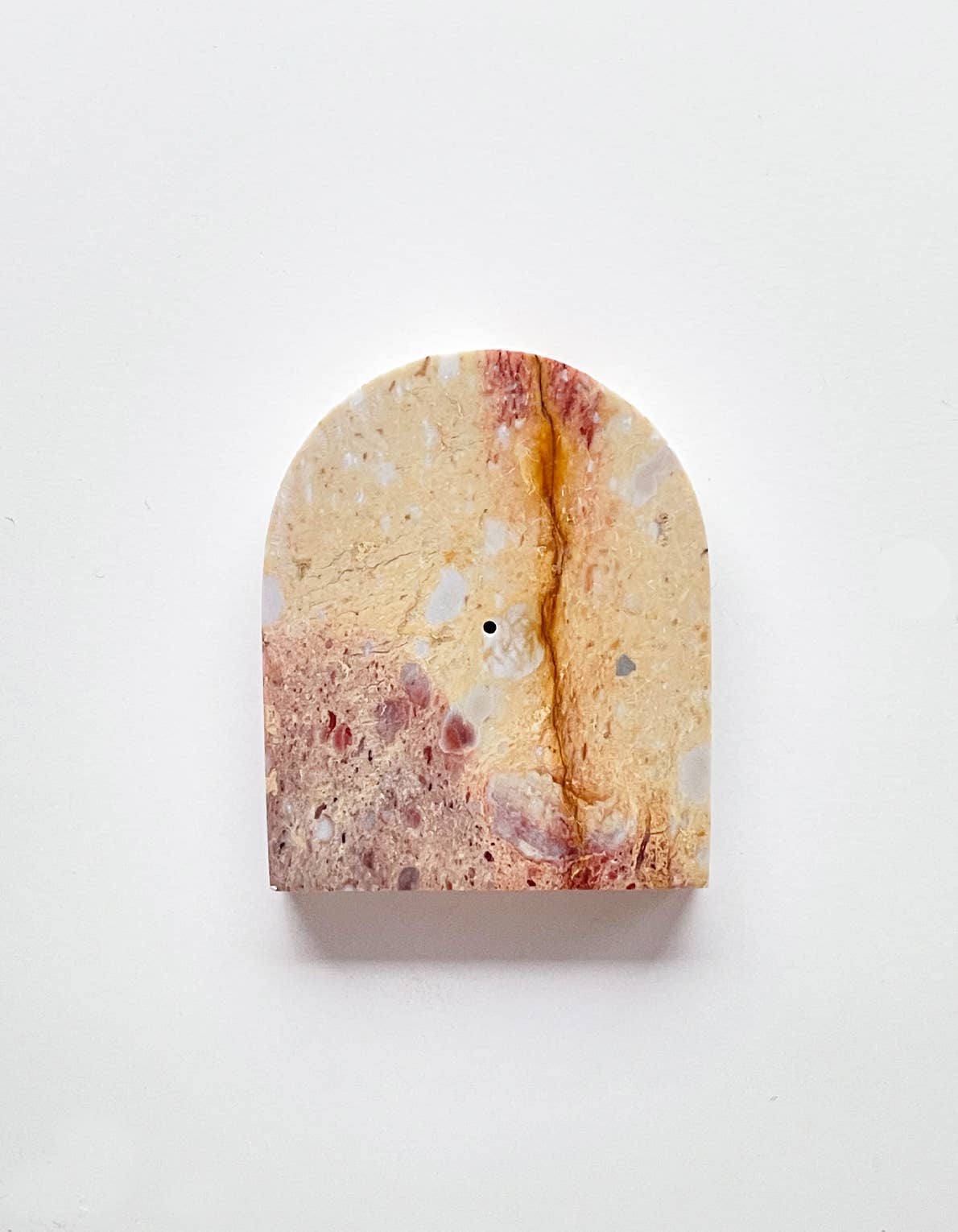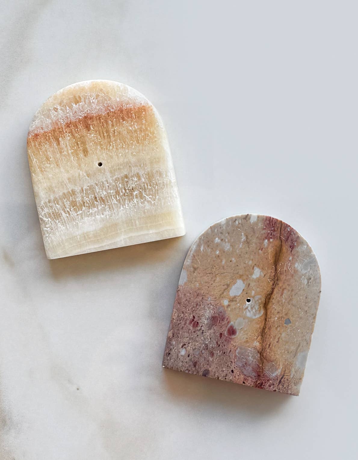 Our incense holders are hand-carved from natural stone by Peruvian artisans, and certified ethically hand-crafted by NEST. No two are exactly alike–color and veining differences will be apparent on each unique piece.