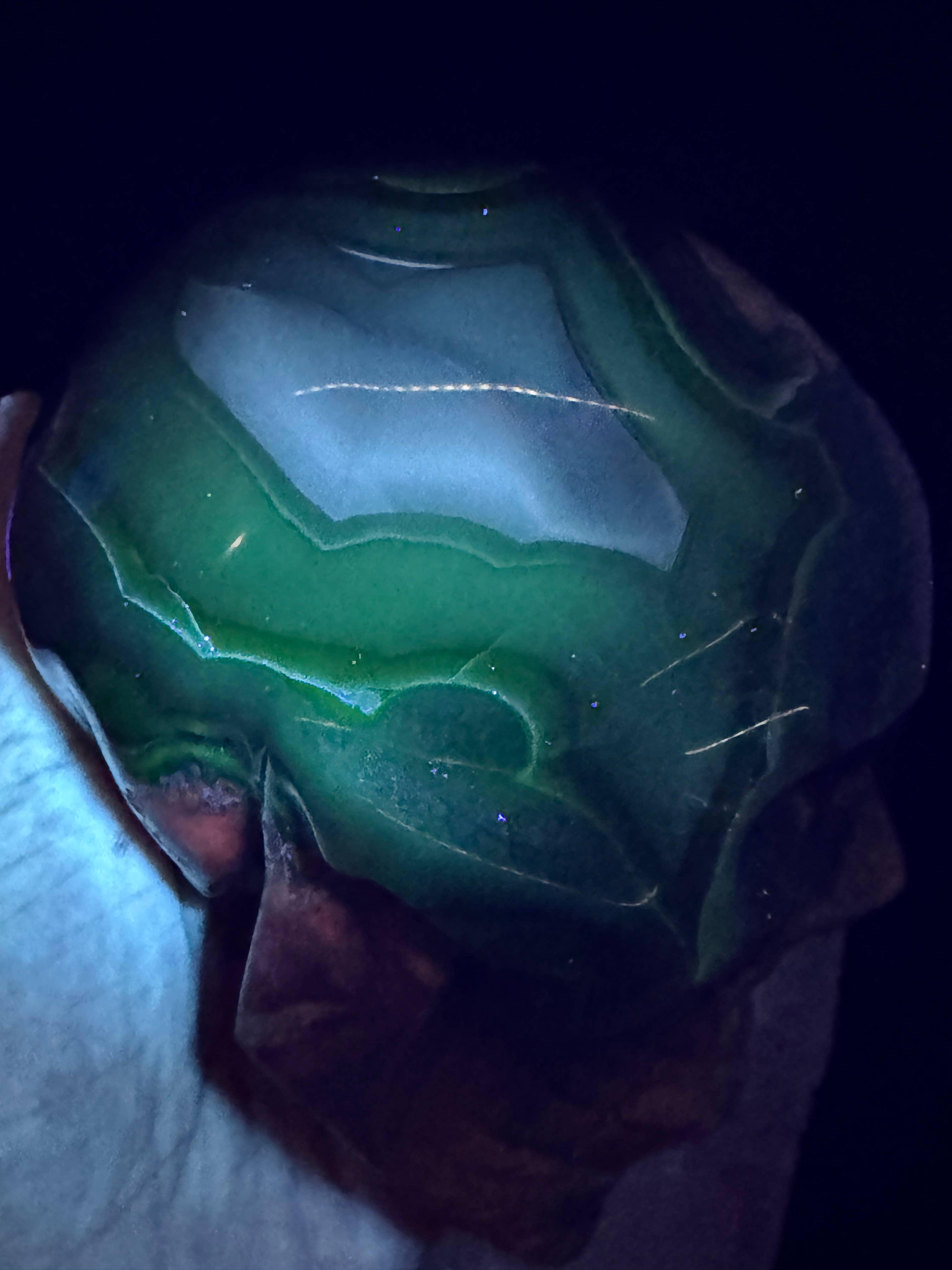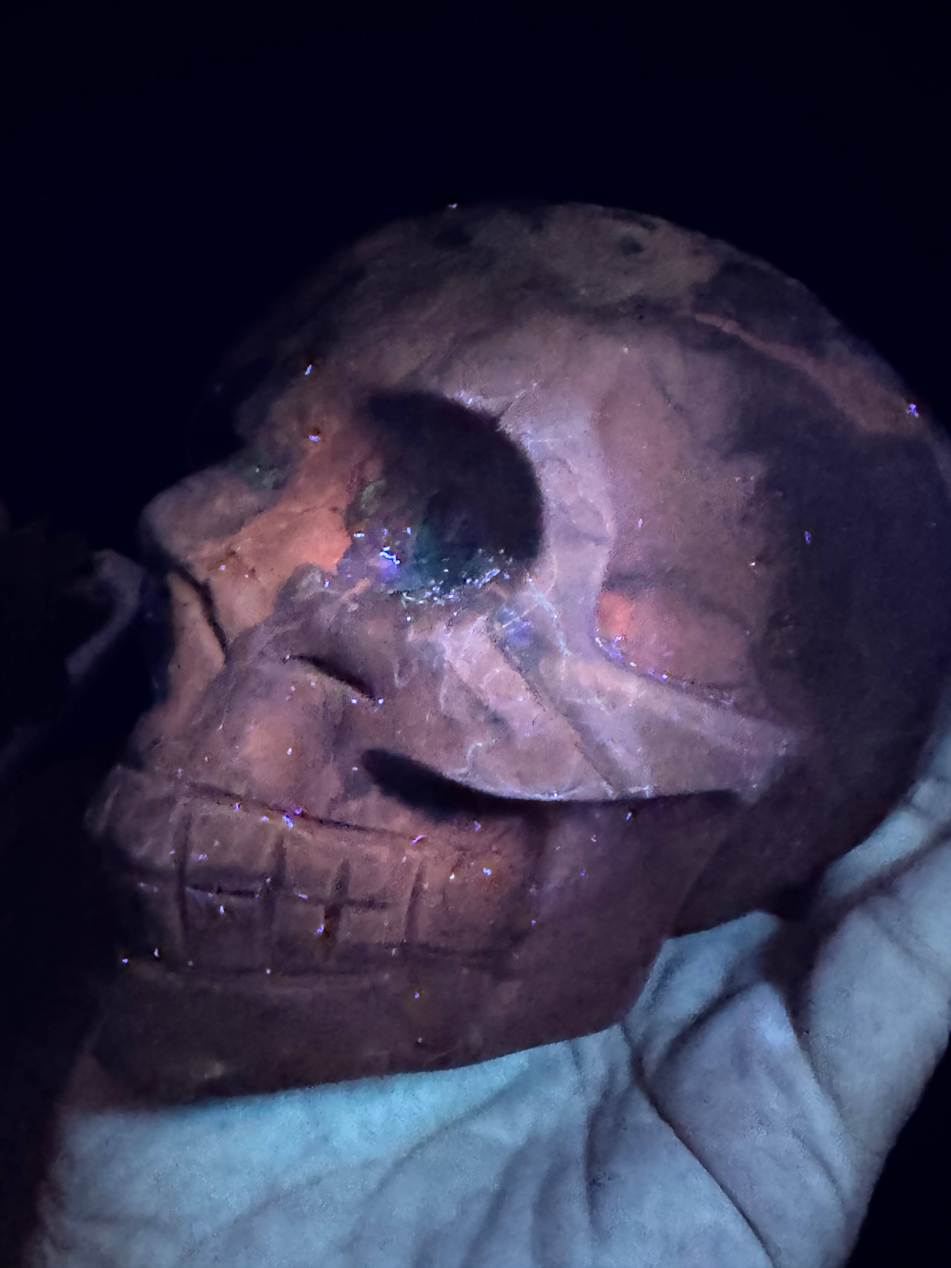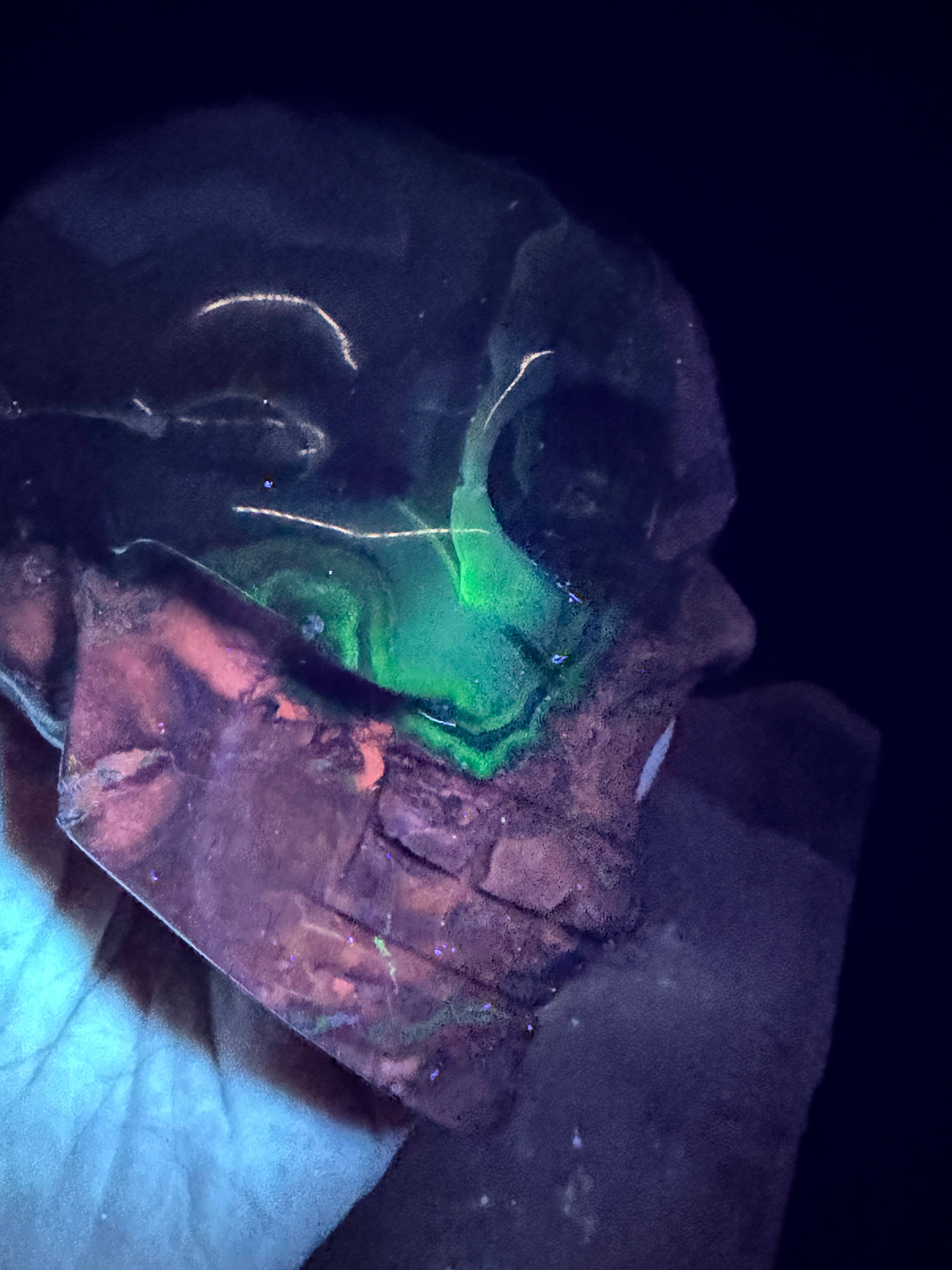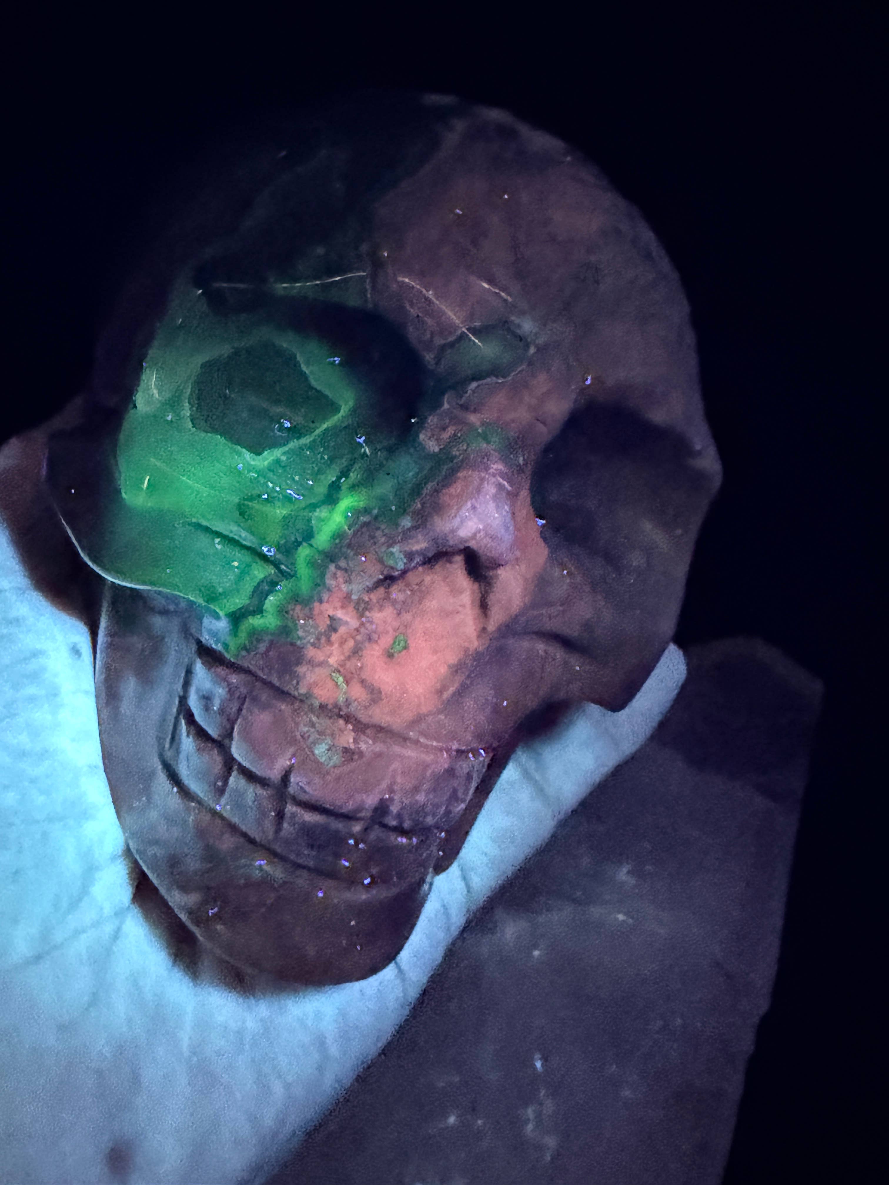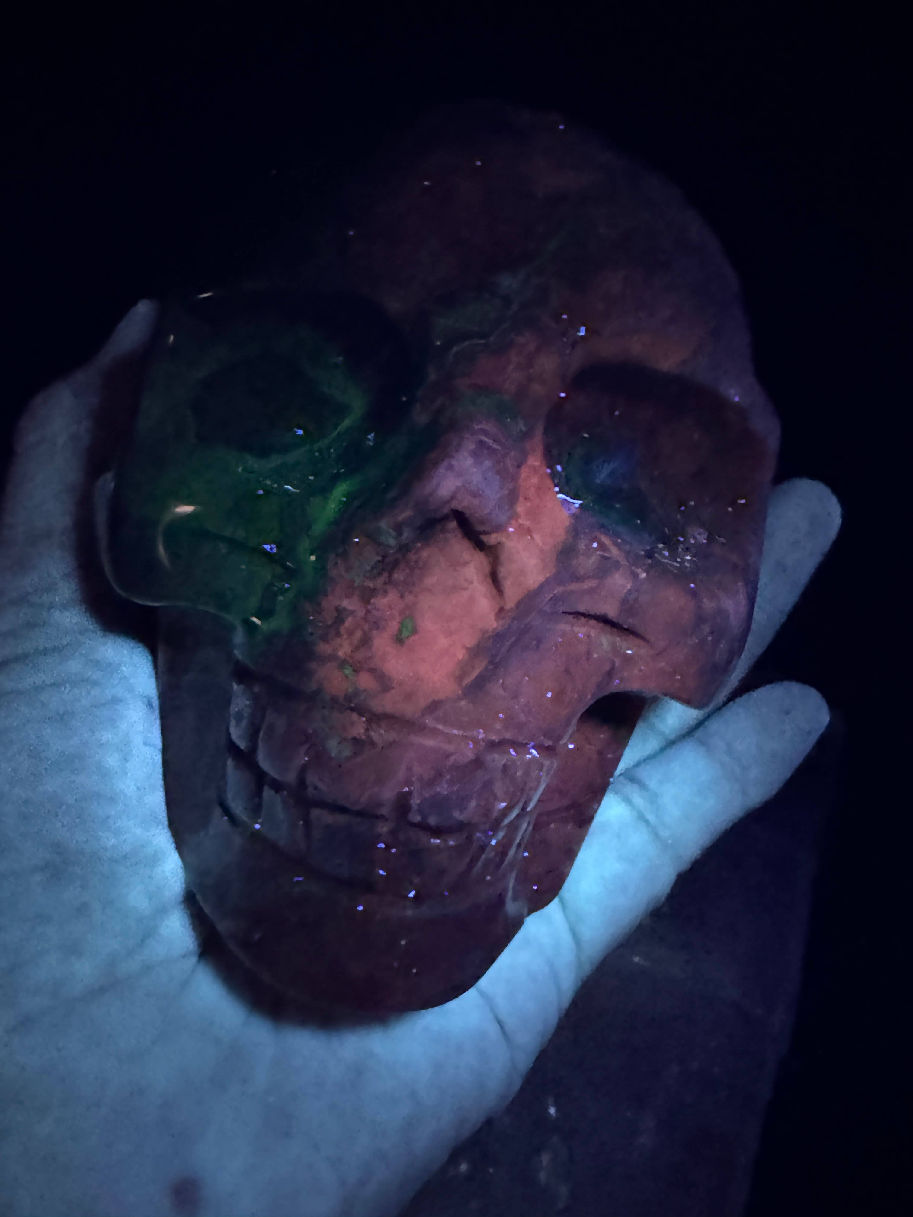 Rare Green & Red Uv Reactive Volcanic Agate Skull