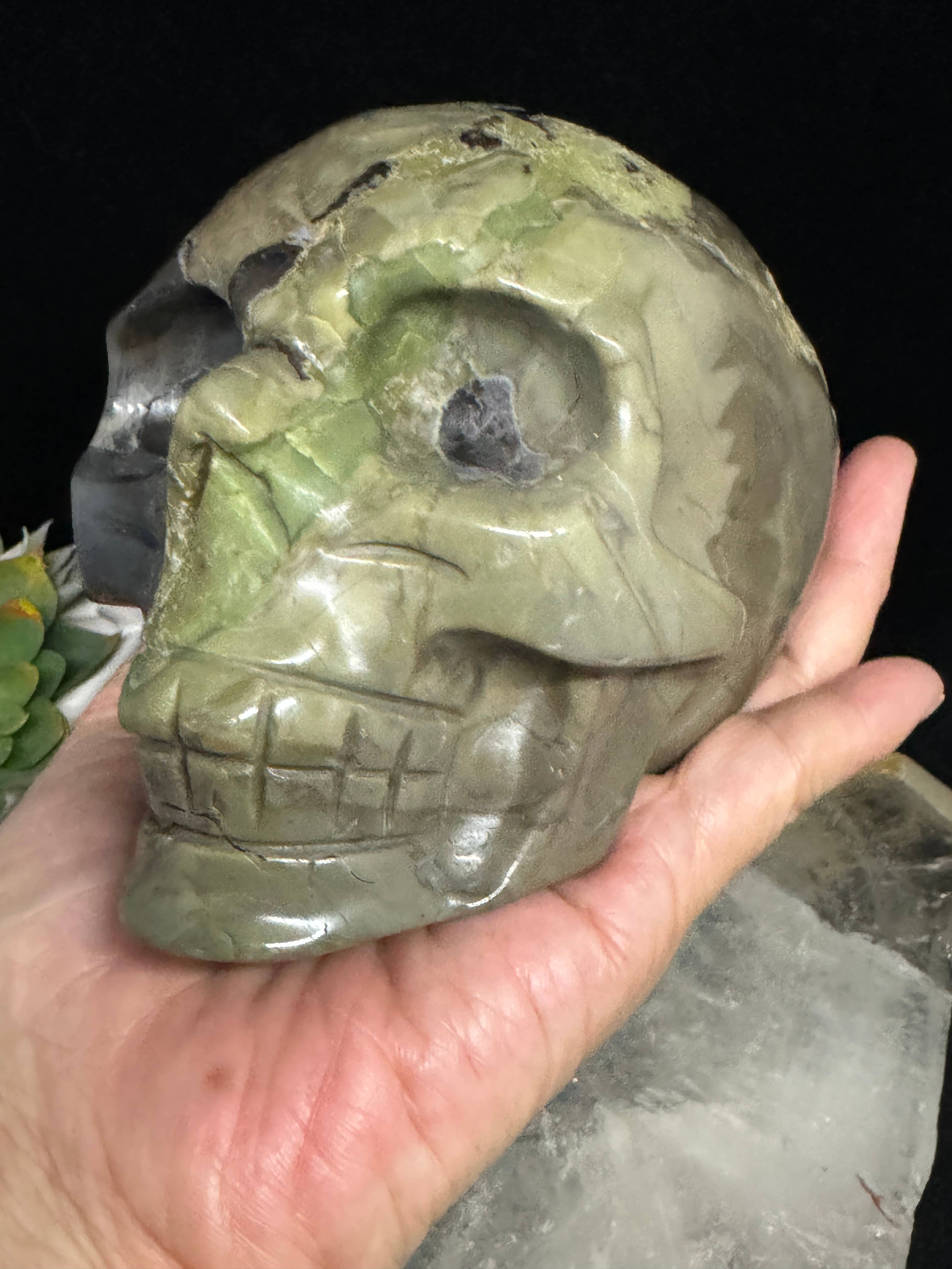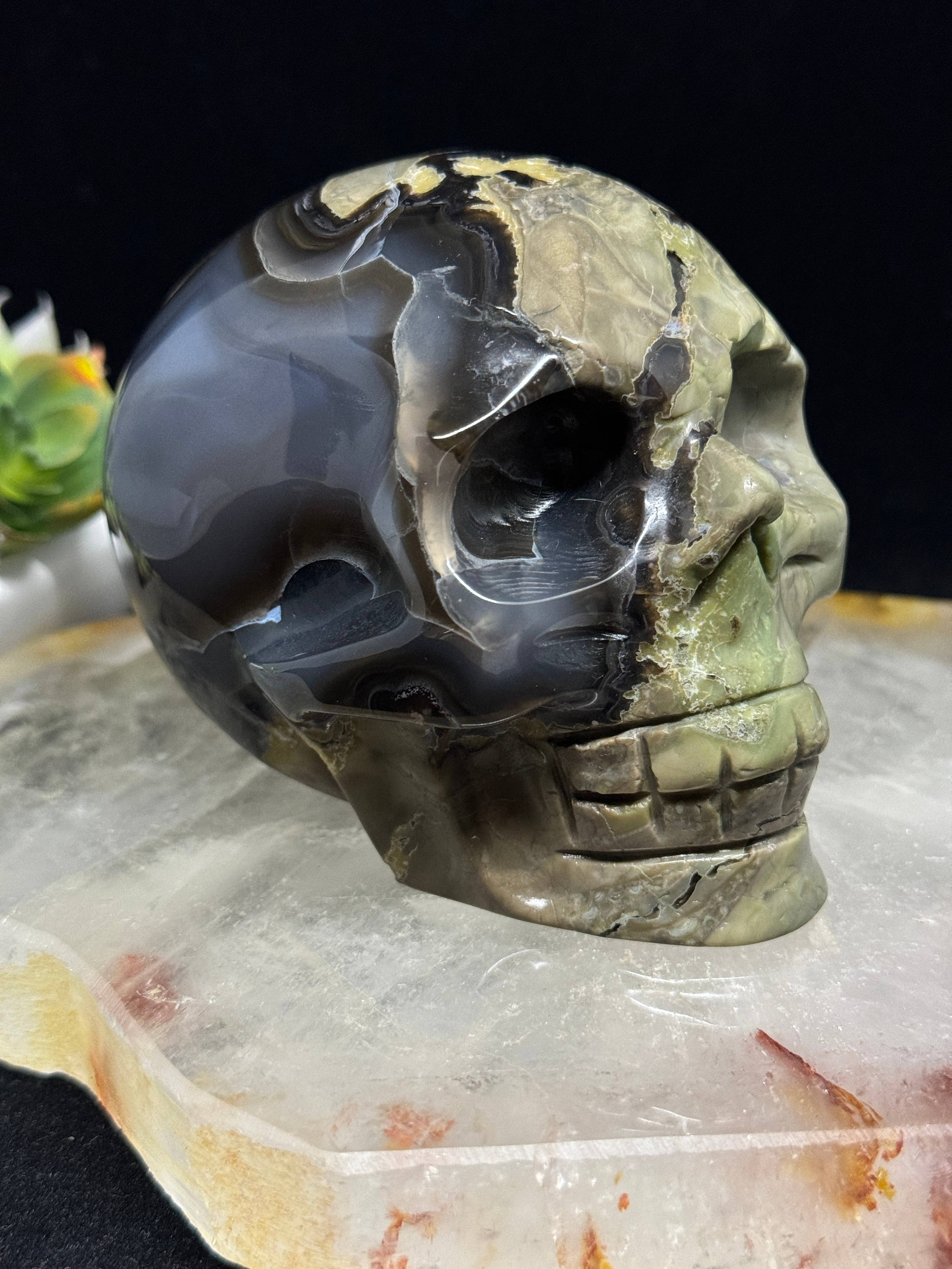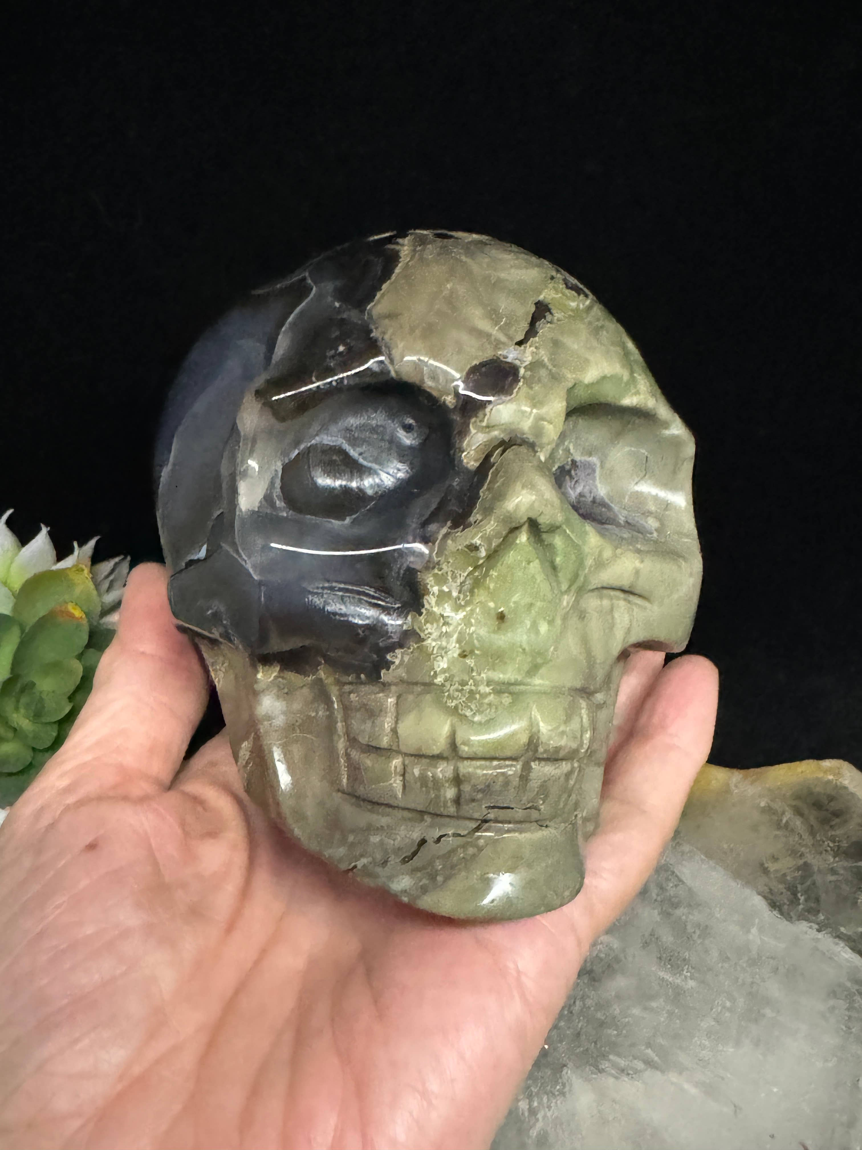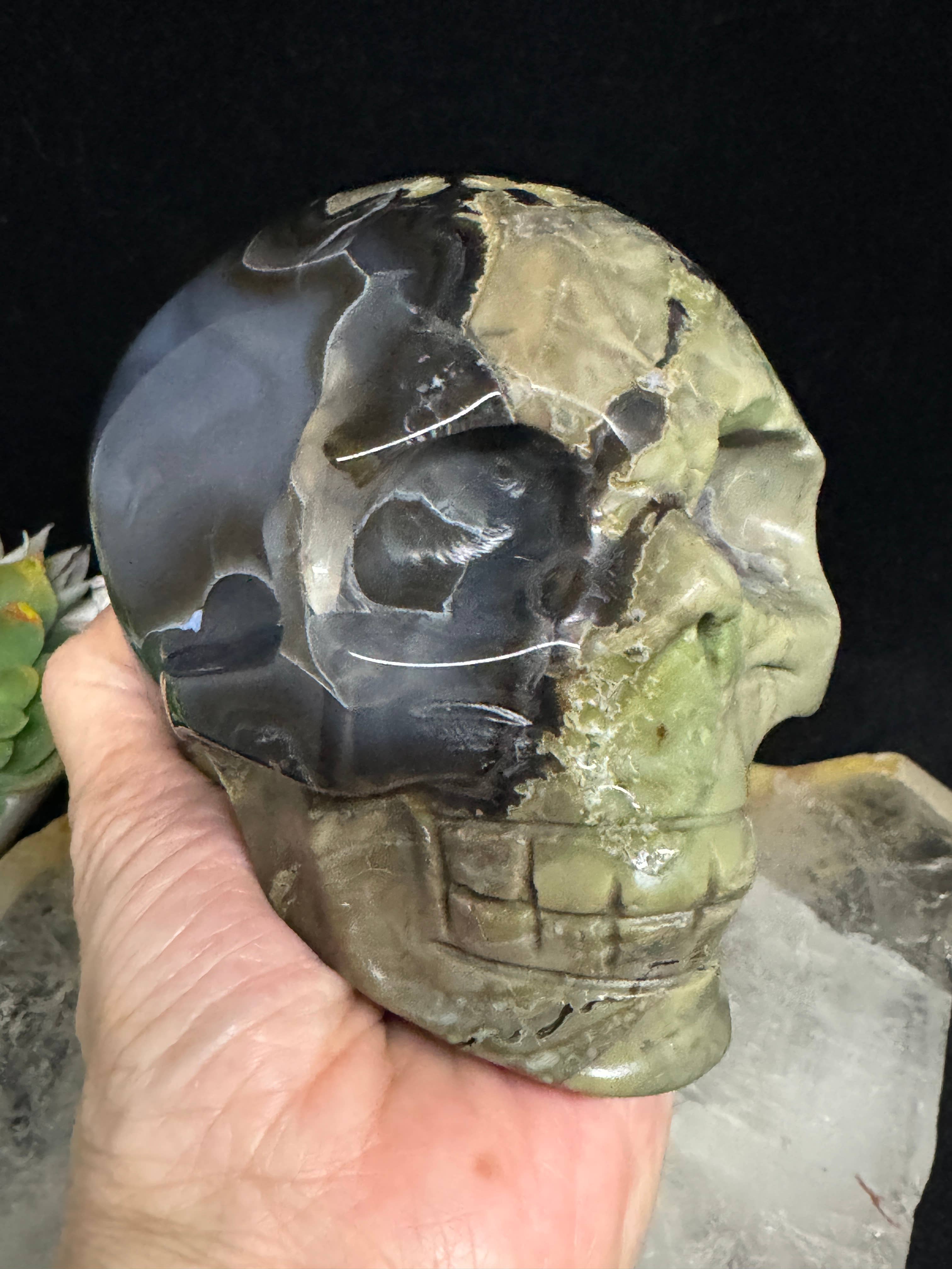 Rare Green & Red Uv Reactive Volcanic Agate Skull