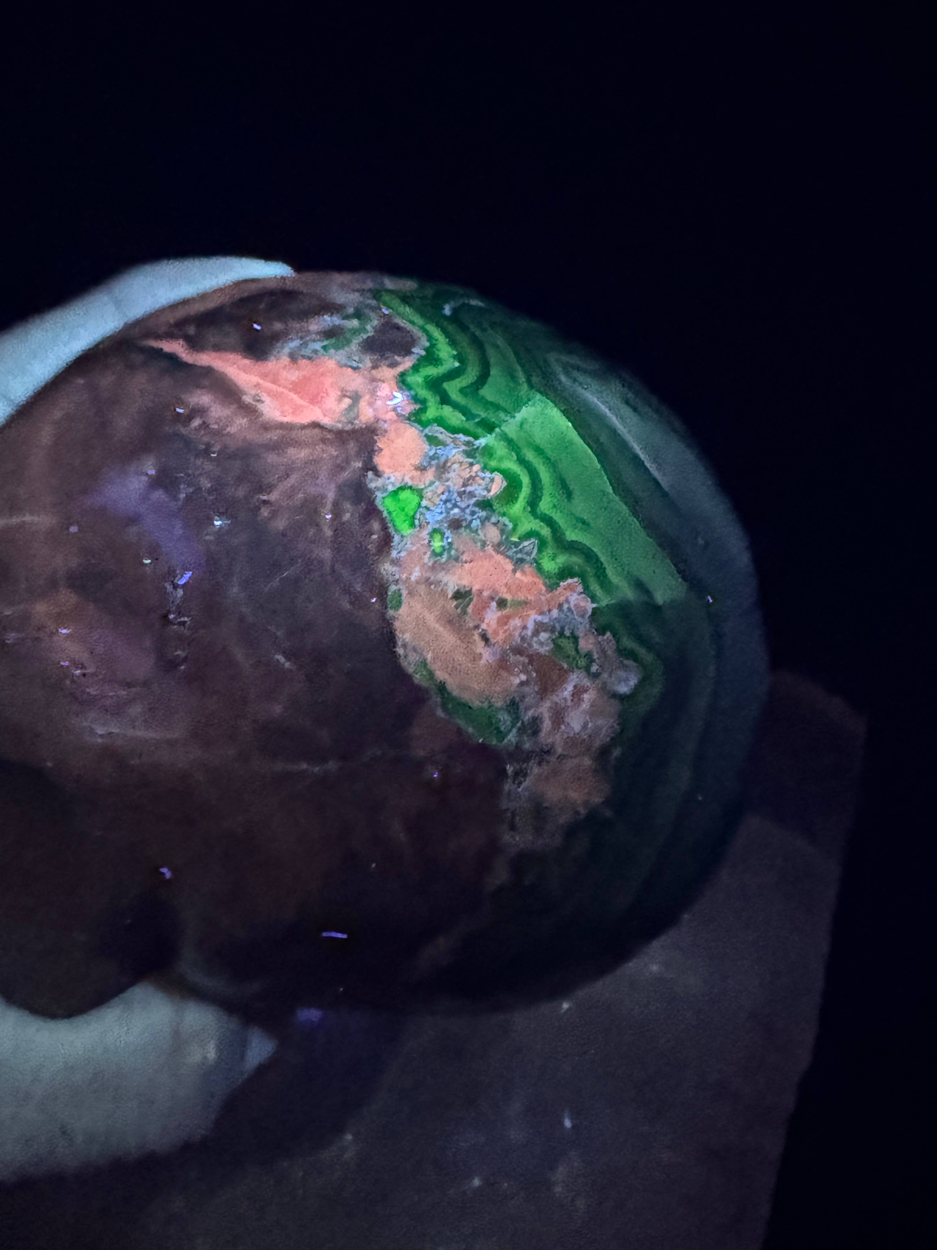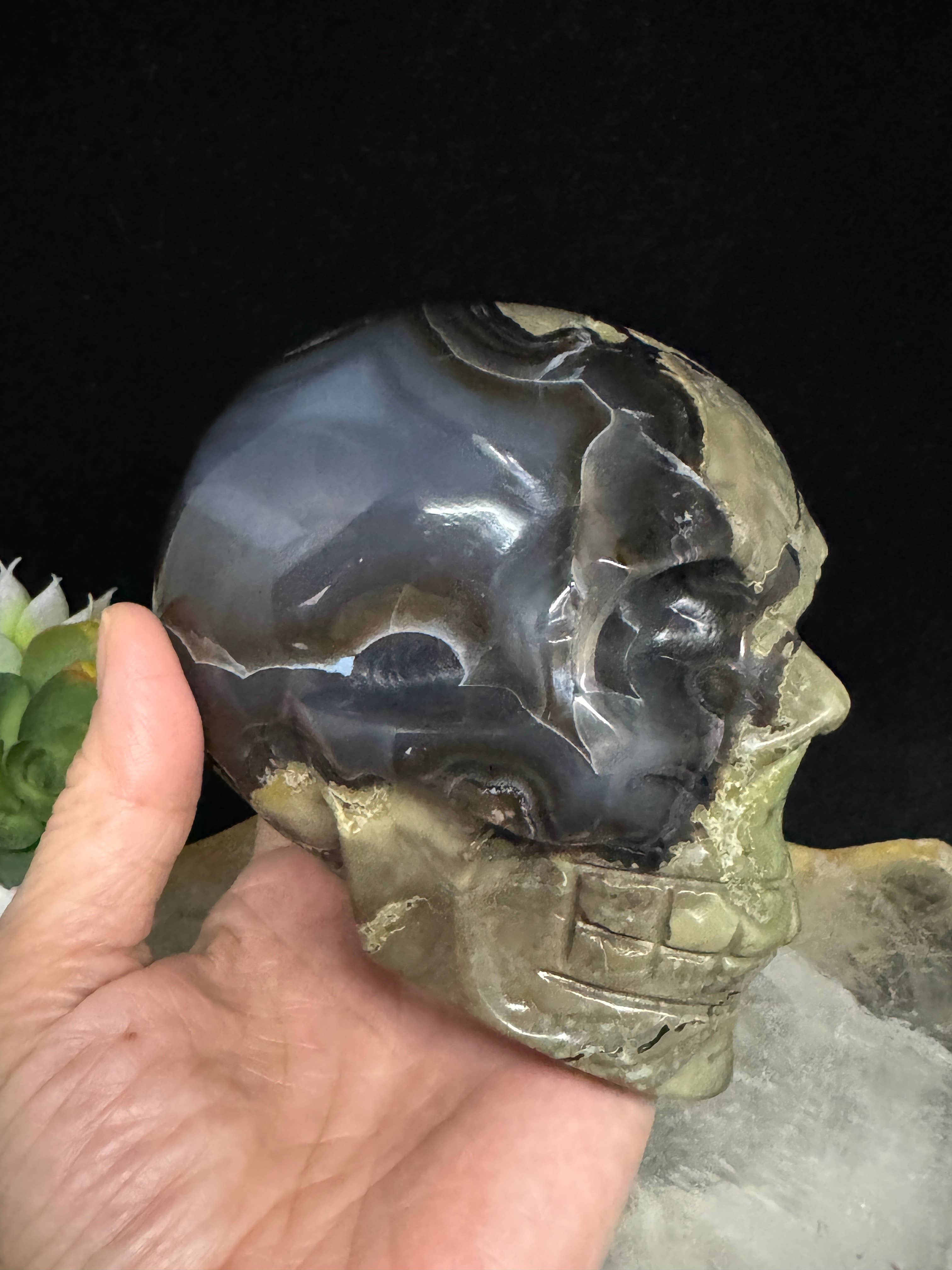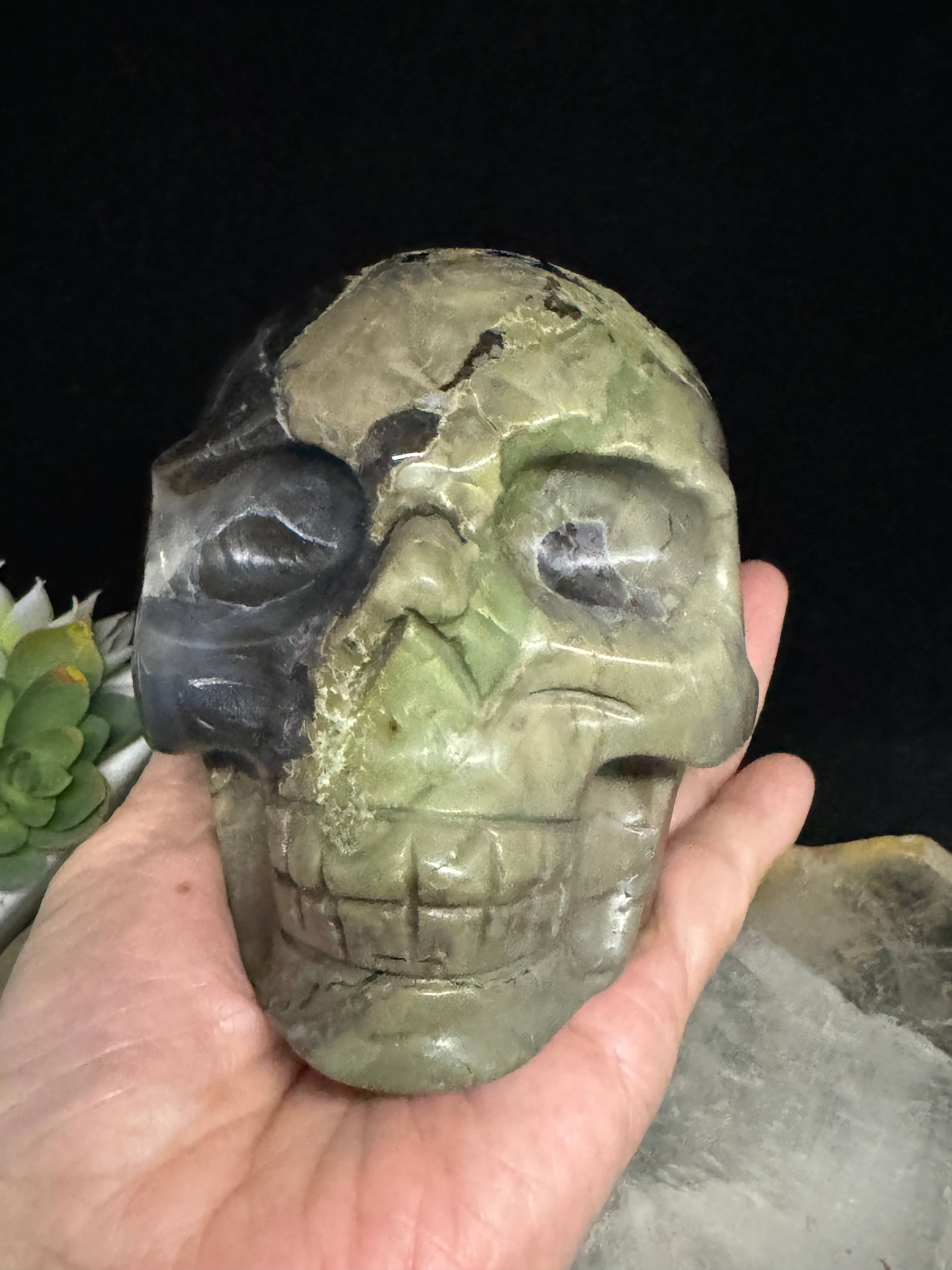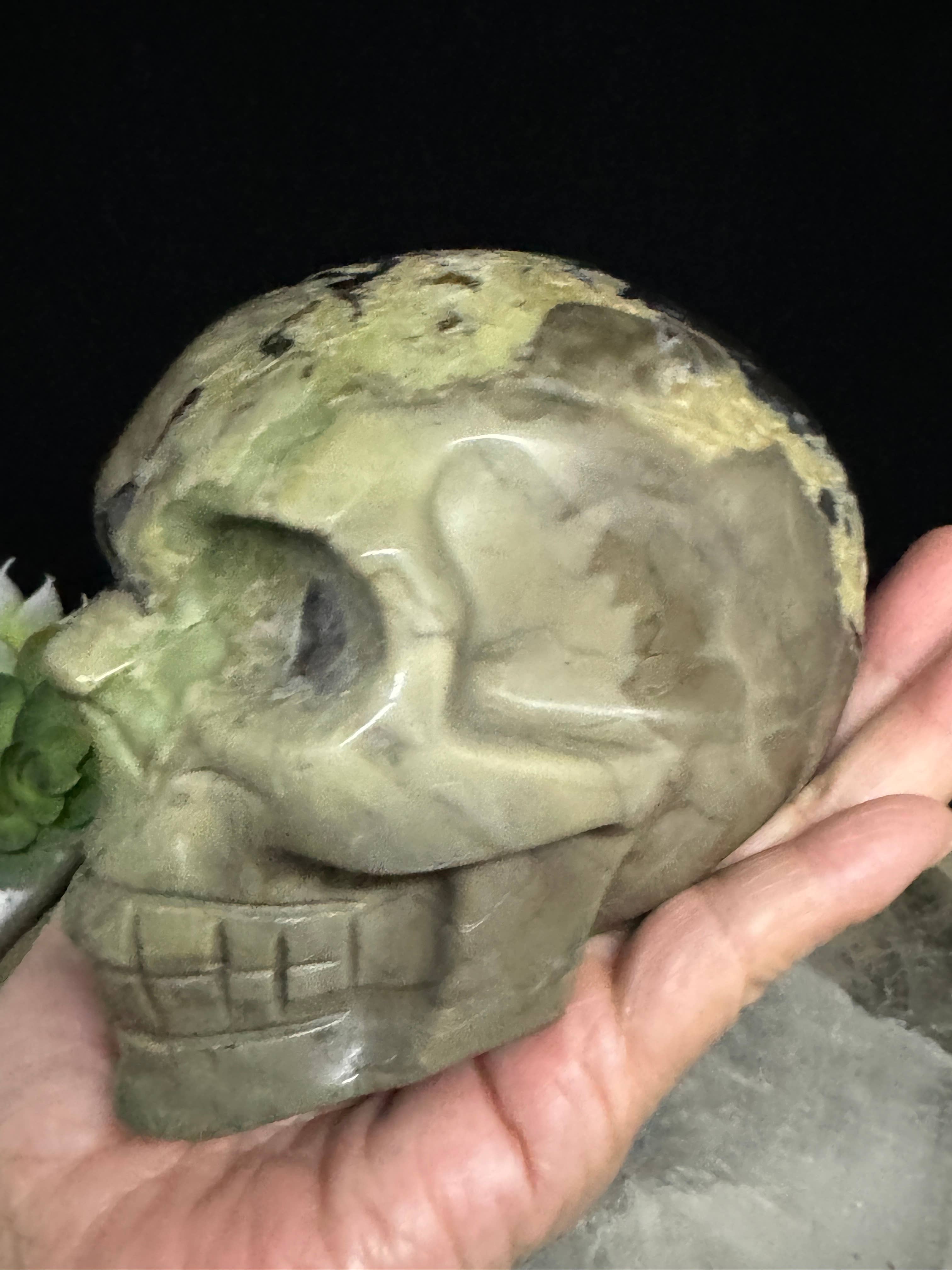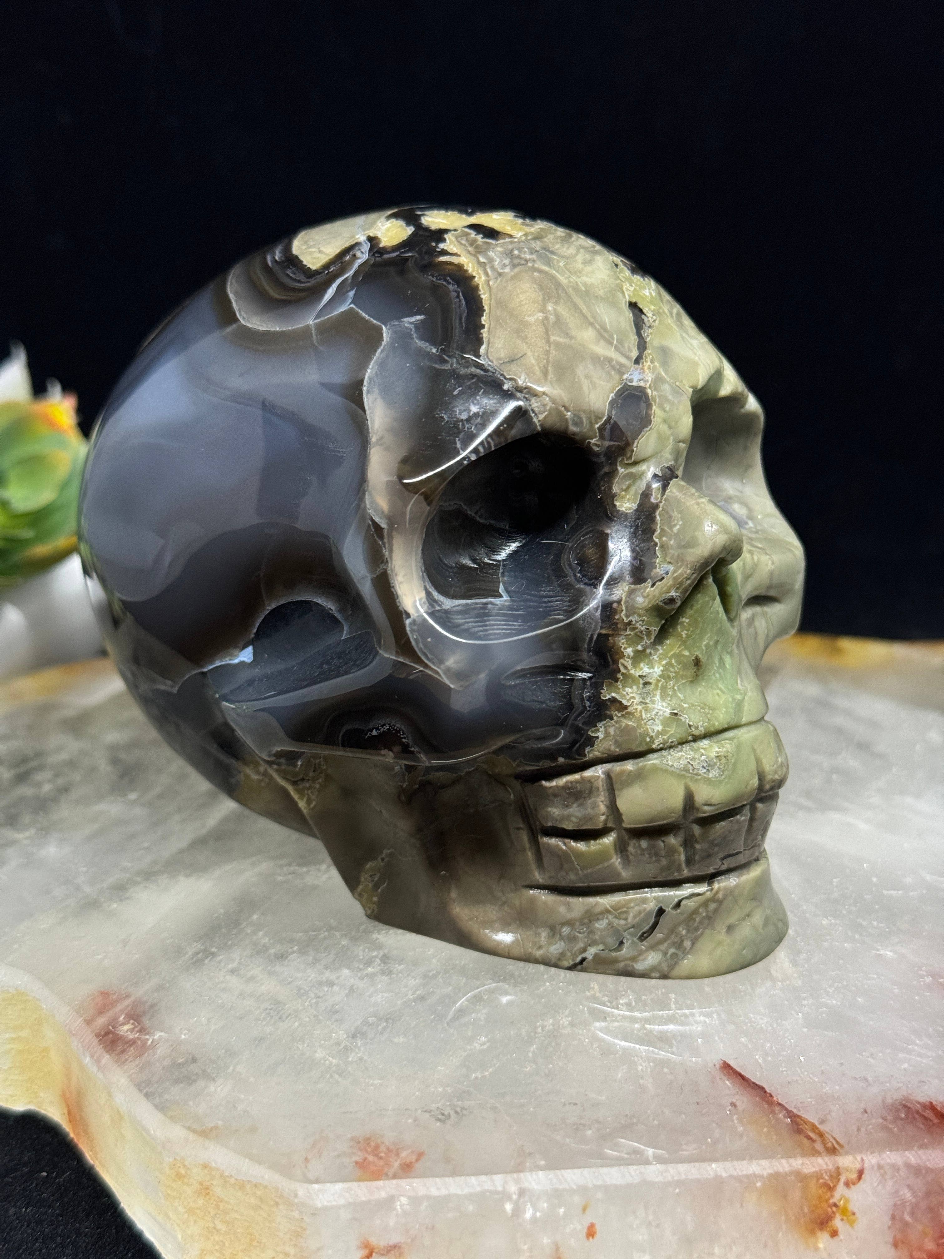 Rare Green & Red Uv Reactive Volcanic Agate Skull