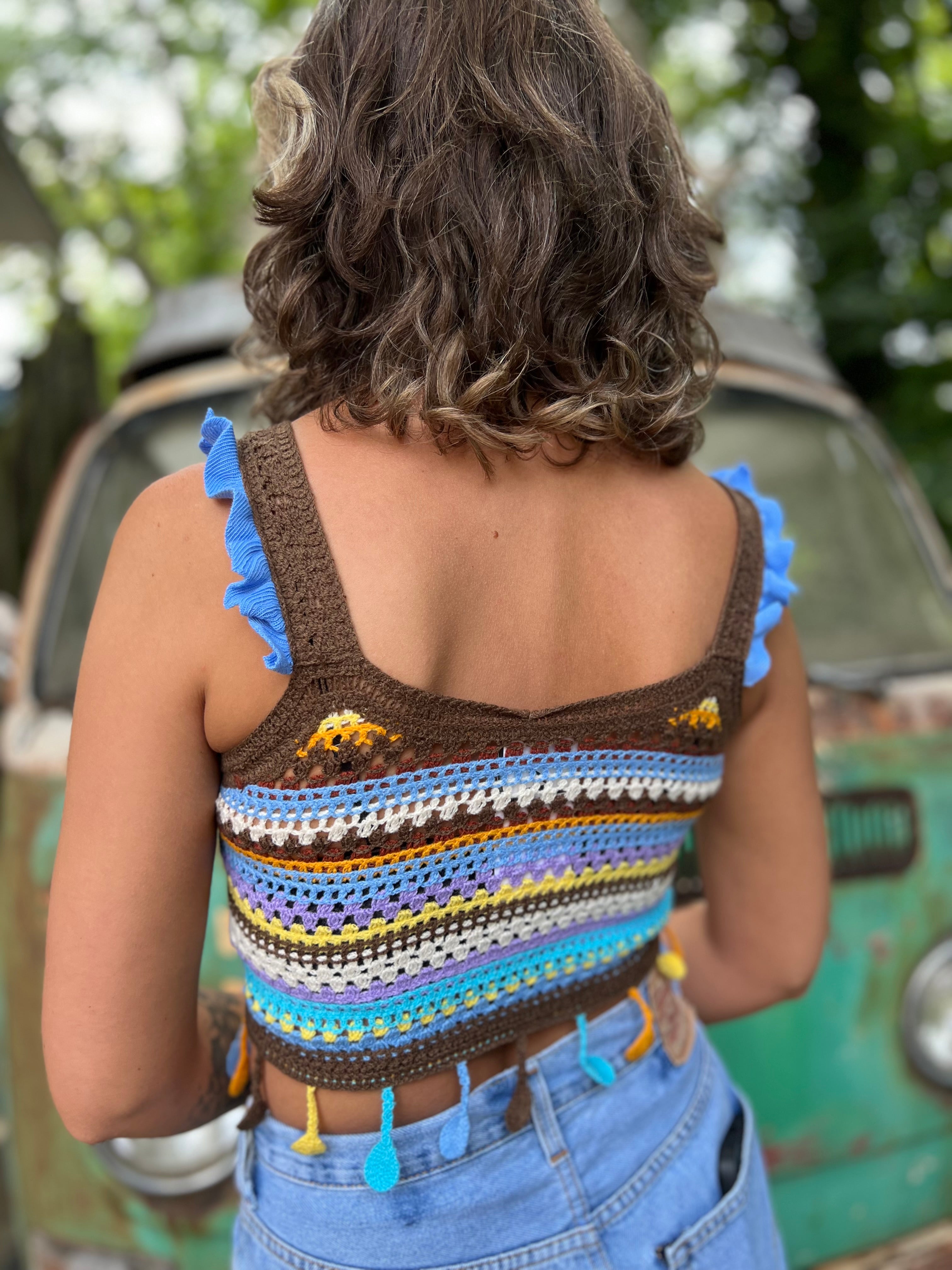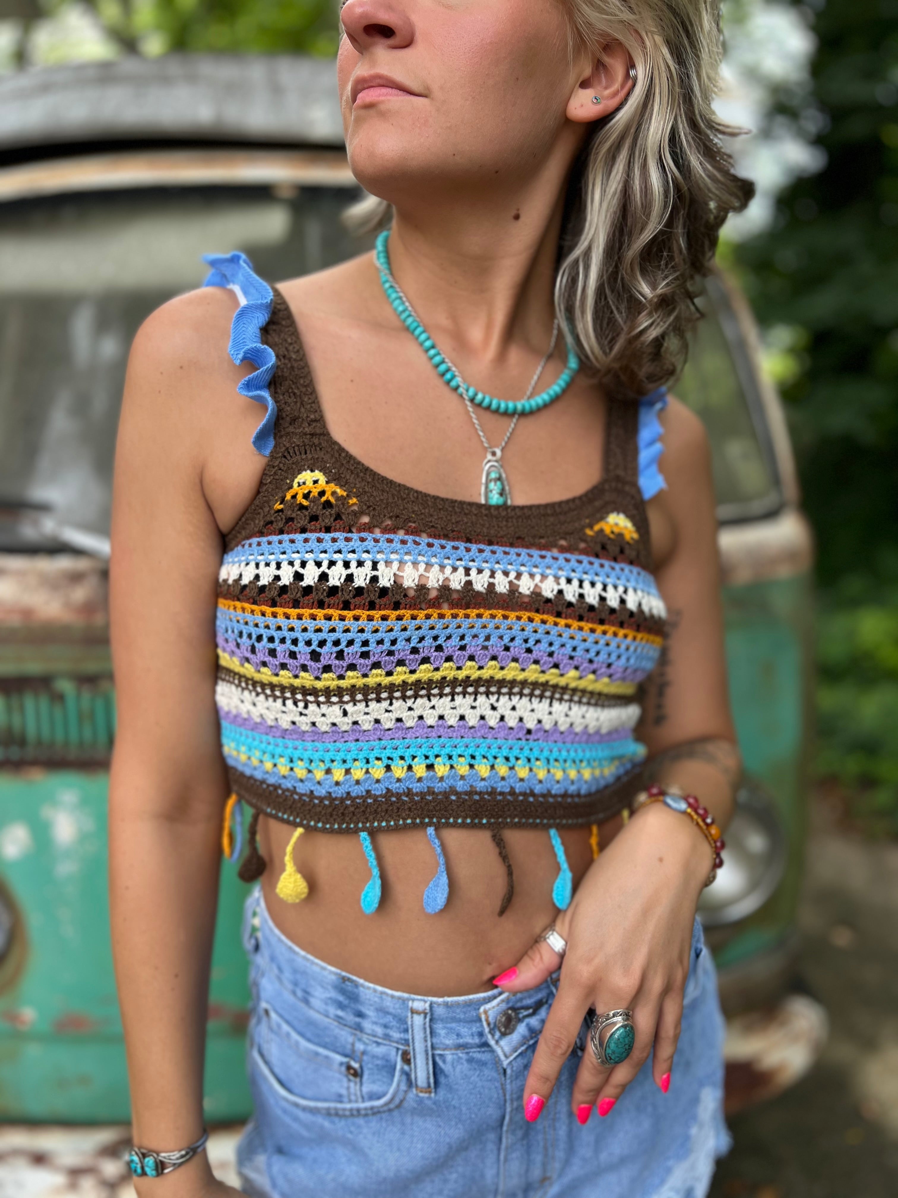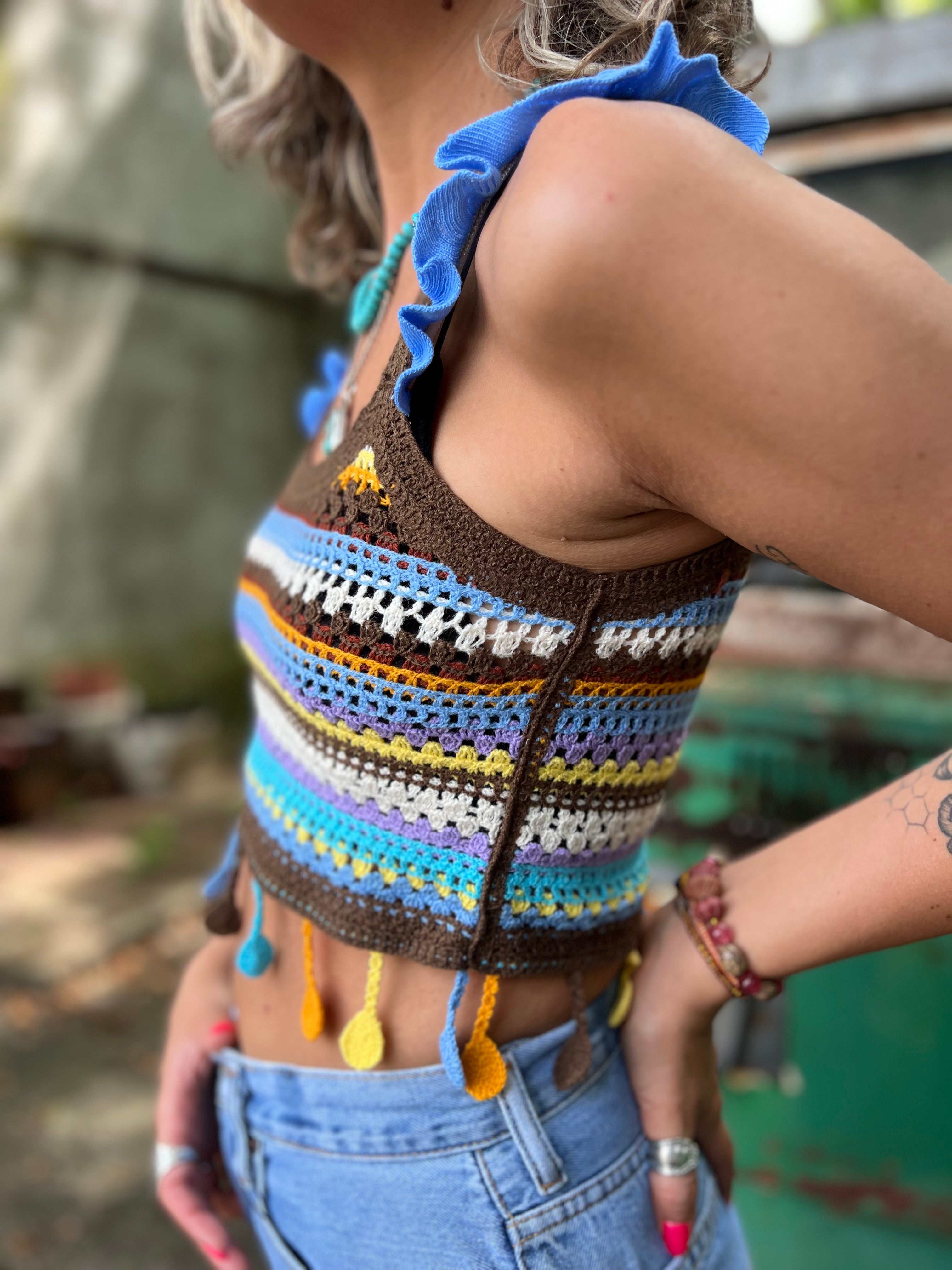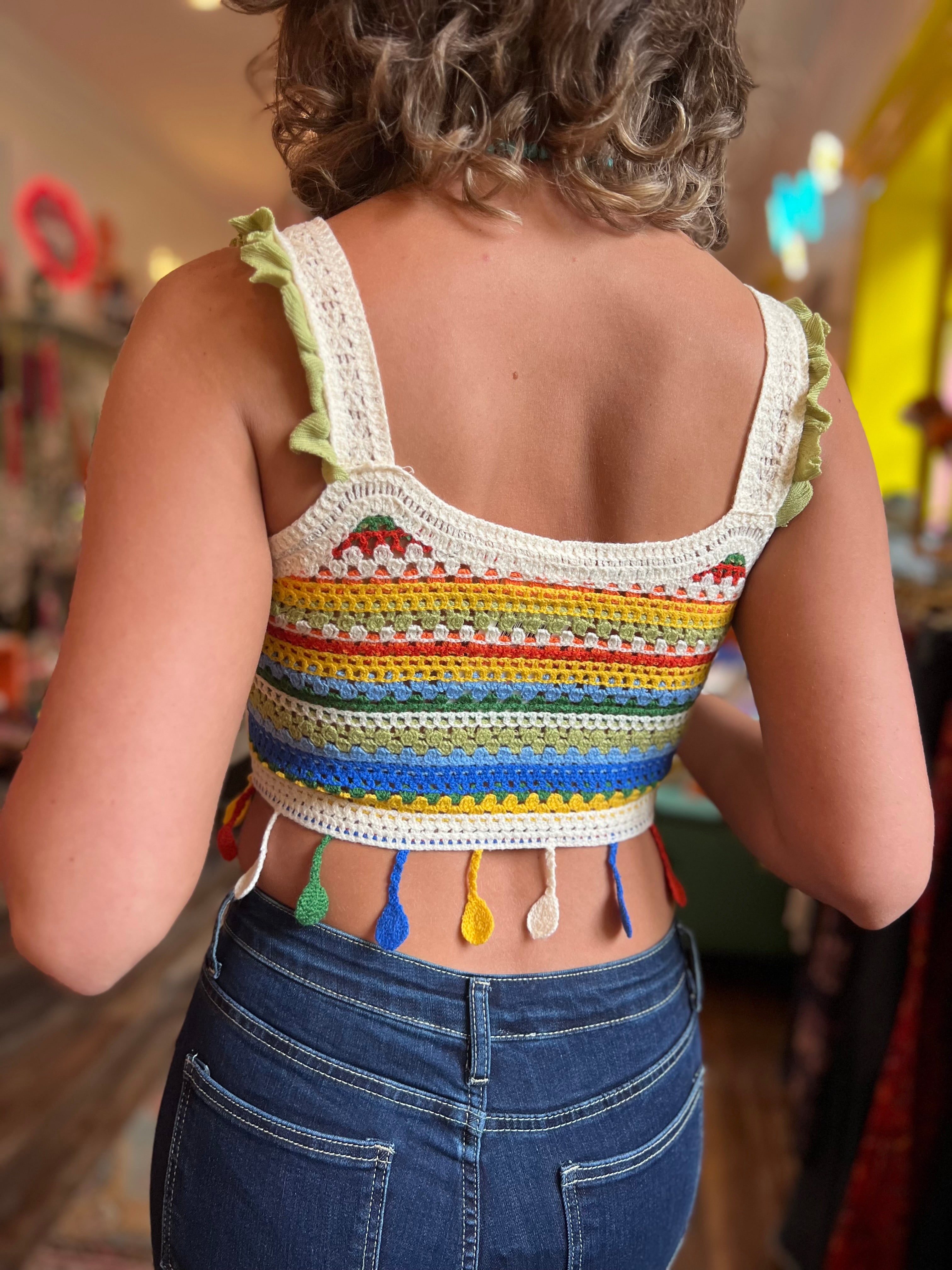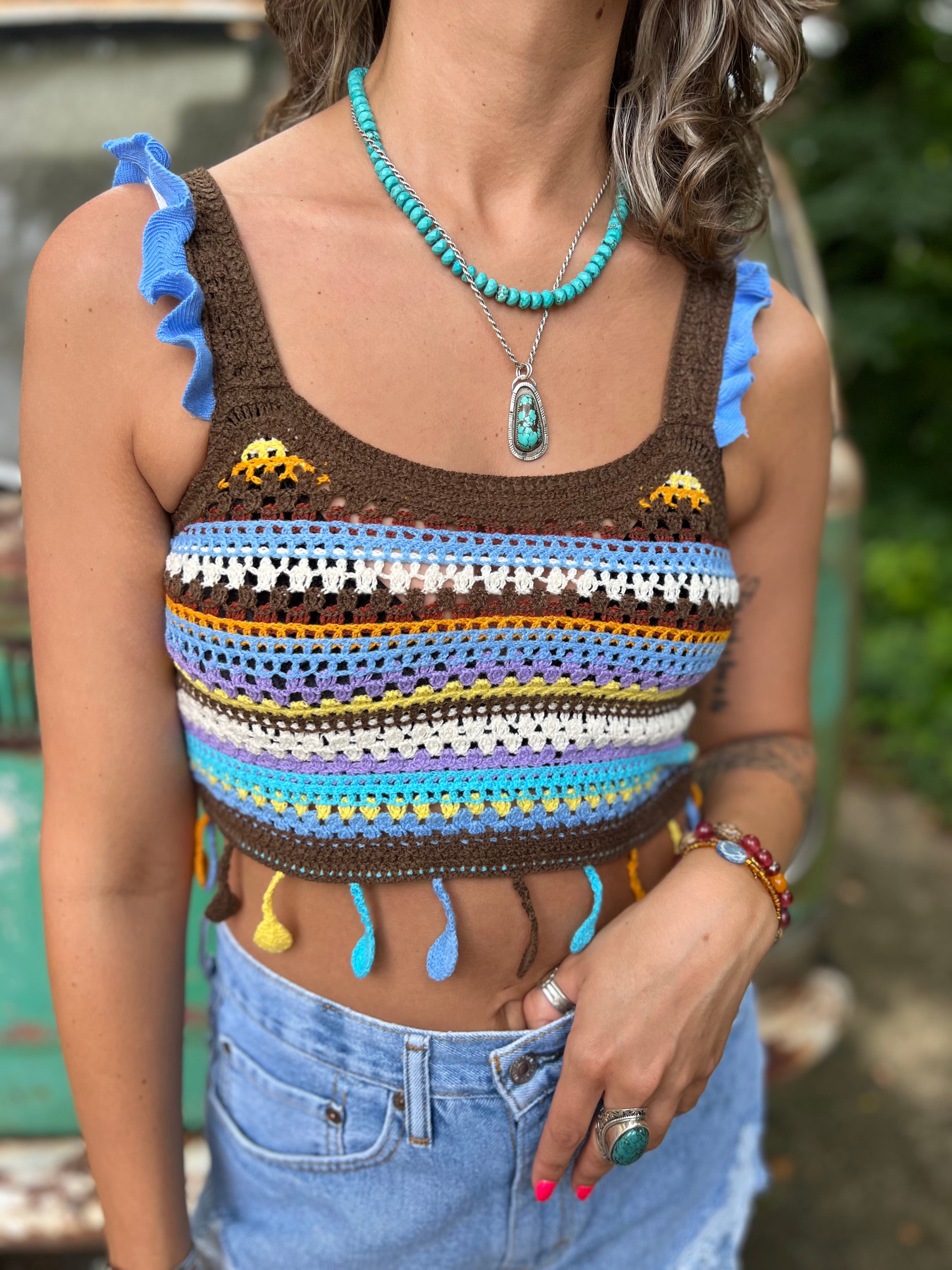 Step into summer with a burst of color and carefree energy in this vibrant boho knit tank top. A fun, feel-good essential for every boho wardrobe.