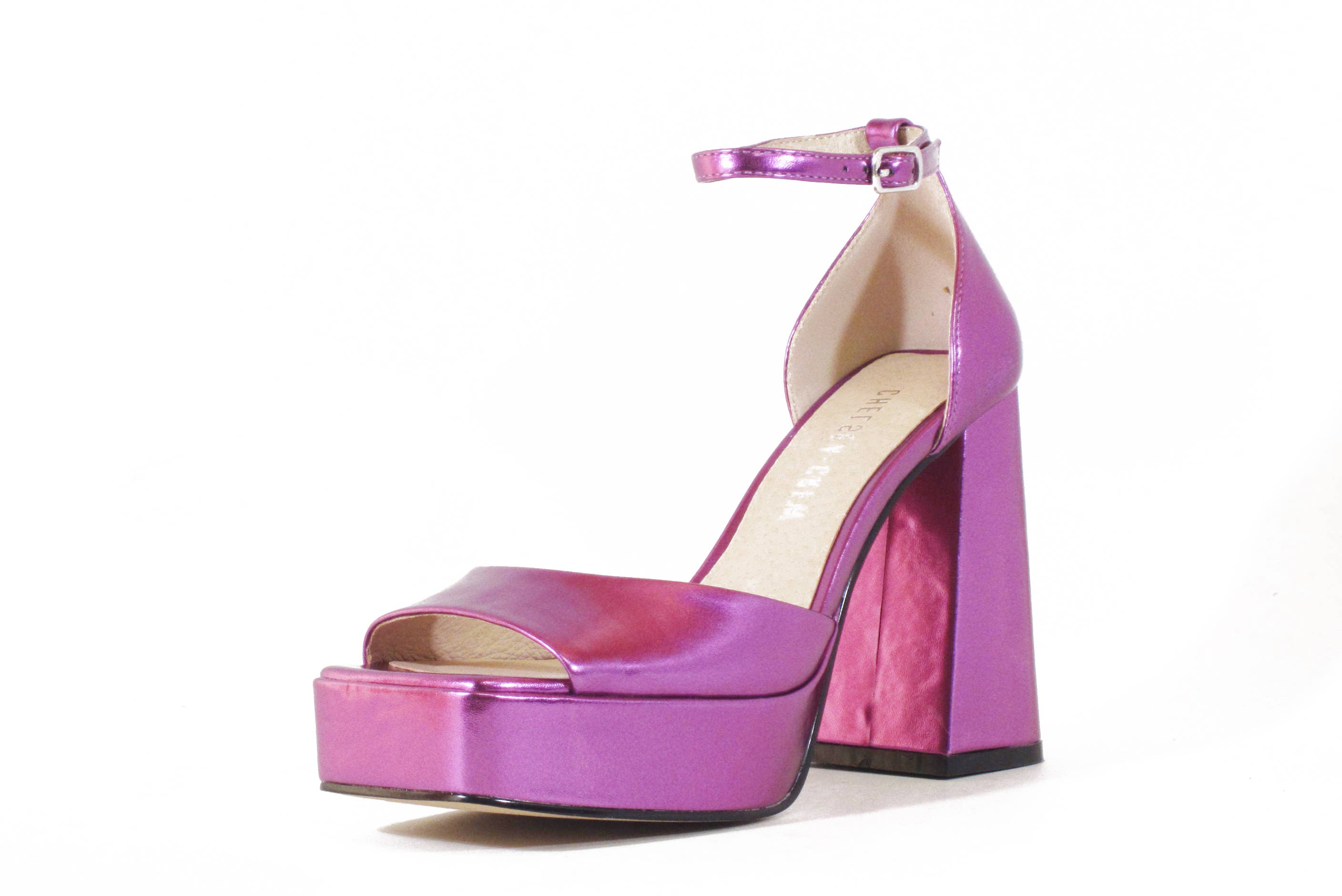 Chase your dreams while conquering the path in the Chaser open toe platform disco heels. Available in metallic shade of pink to set you apart from the other girlies. Upper: Faux Leather Lining & Sock: Leather