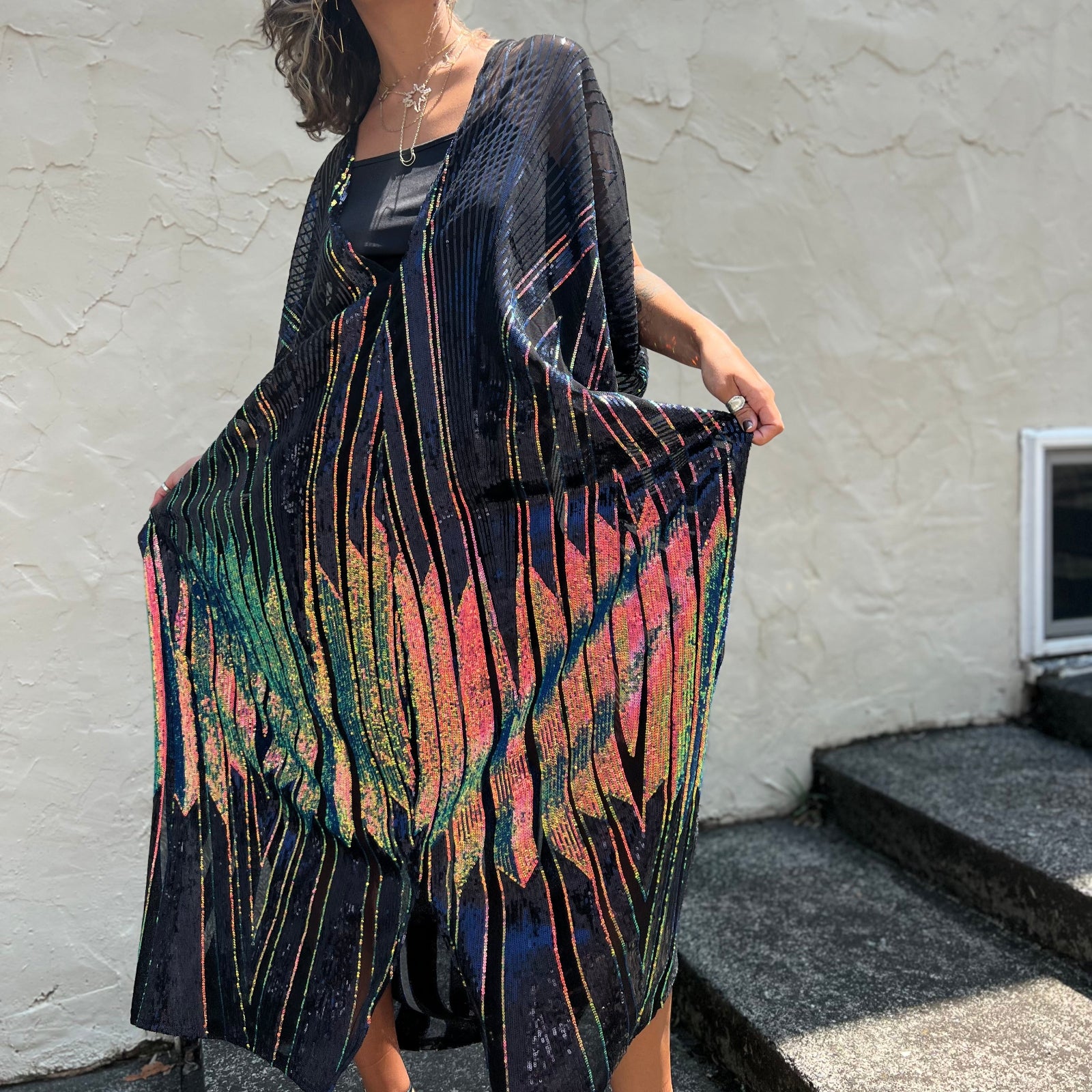 Be a show-stopper with this Midnight Lotus Caftan crafted by the one and only Jennafer Grace! Wear this gorgeous sequined caftan for a night out on the town and embody the true disco 70s spirit.