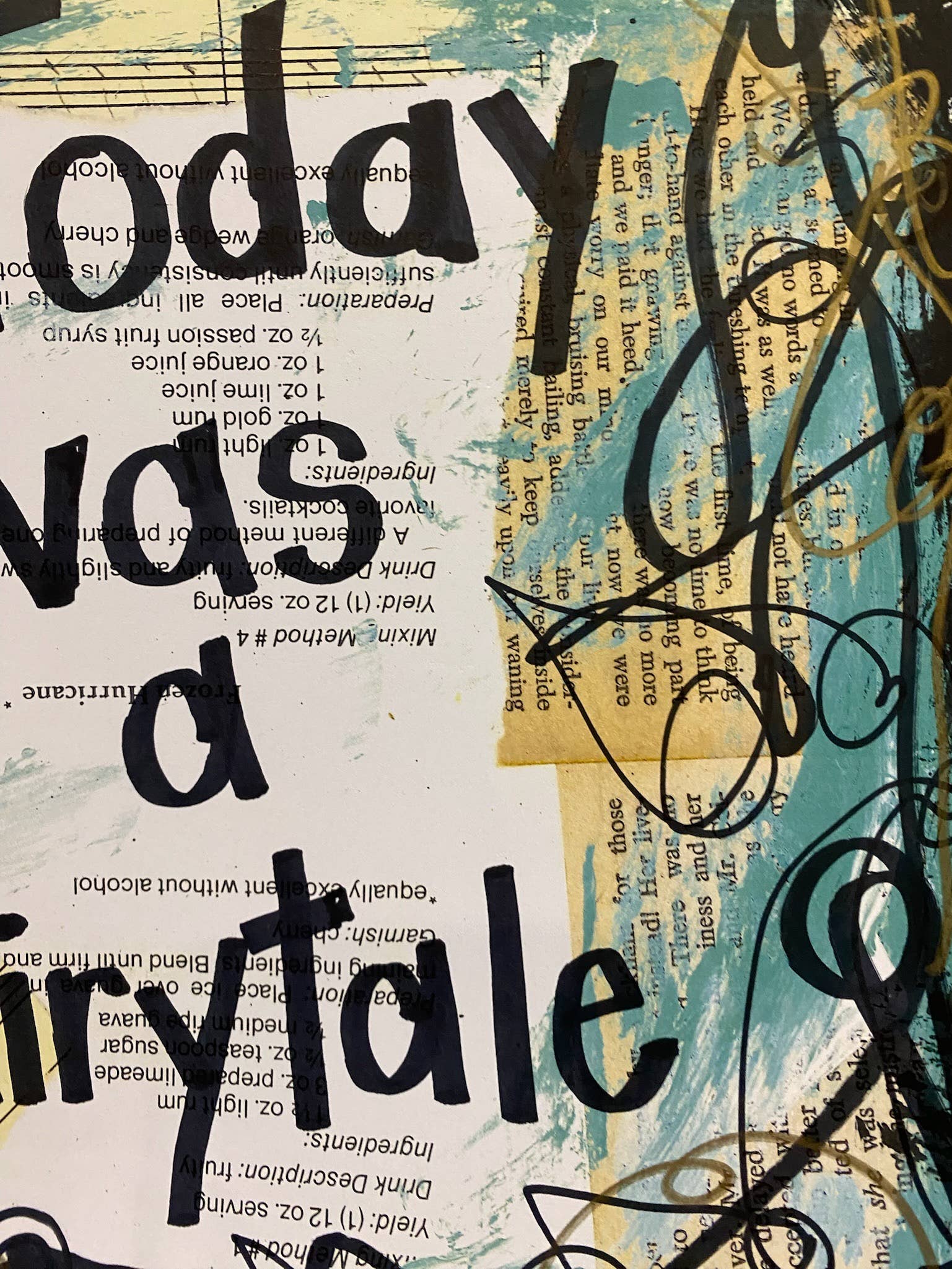 Music teacher, Elexa, of Lexicon of Love hand creates each piece in the shop in Atlanta. "Today was a fairytale is inspired by the Taylor version of Taylor Swift's song. The original painting shown in the pictures is on canvas and uses sheet music, vintage book pages, acrylic paints, and black sharpie.