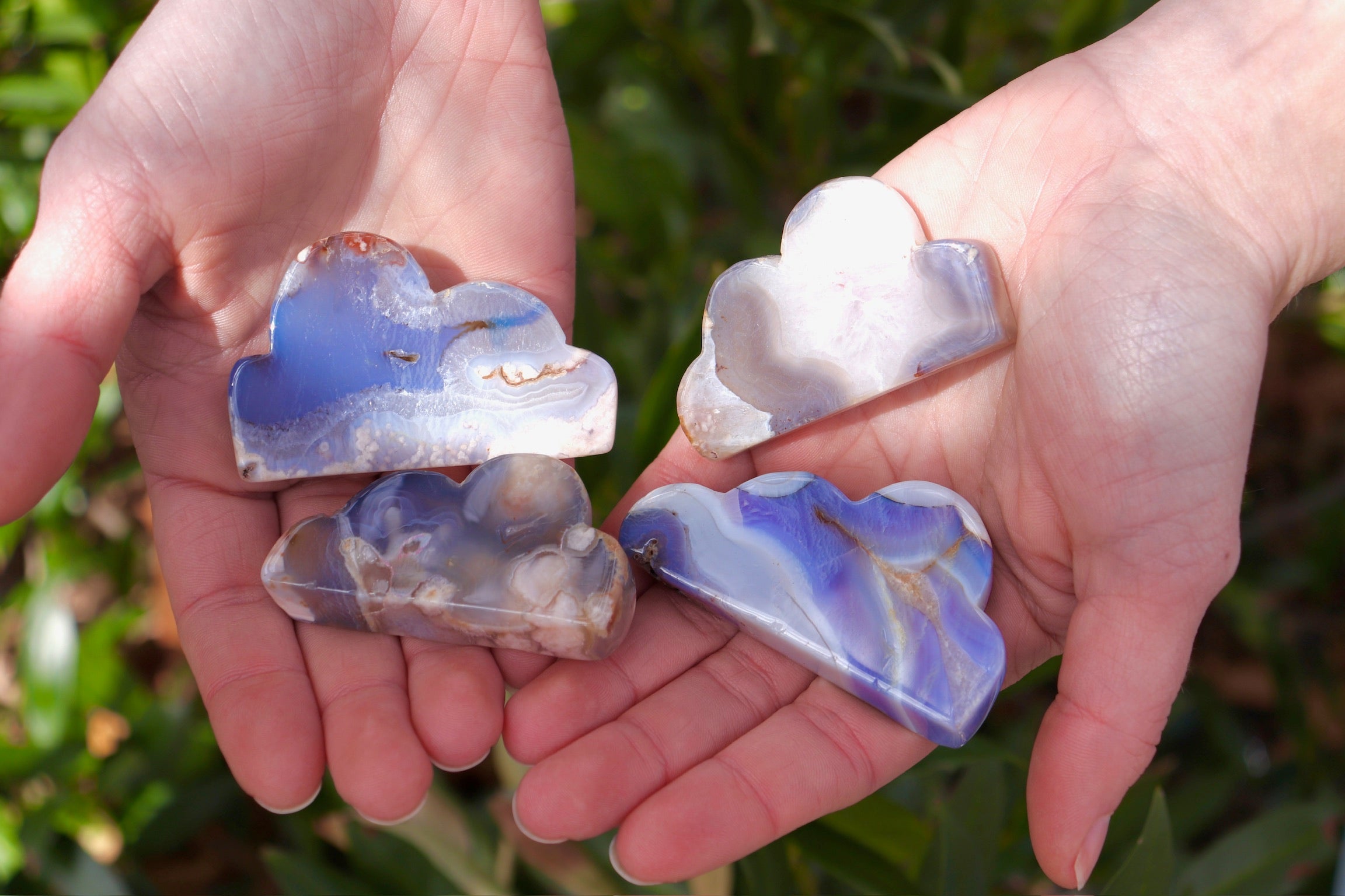 Drift into serenity with our Flower Agate Crystal Clouds, delicately carved to resemble soft, dreamy clouds. These mesmerizing stones, each 1-2 inches in size, radiate a gentle energy of growth, balance, and emotional healing.