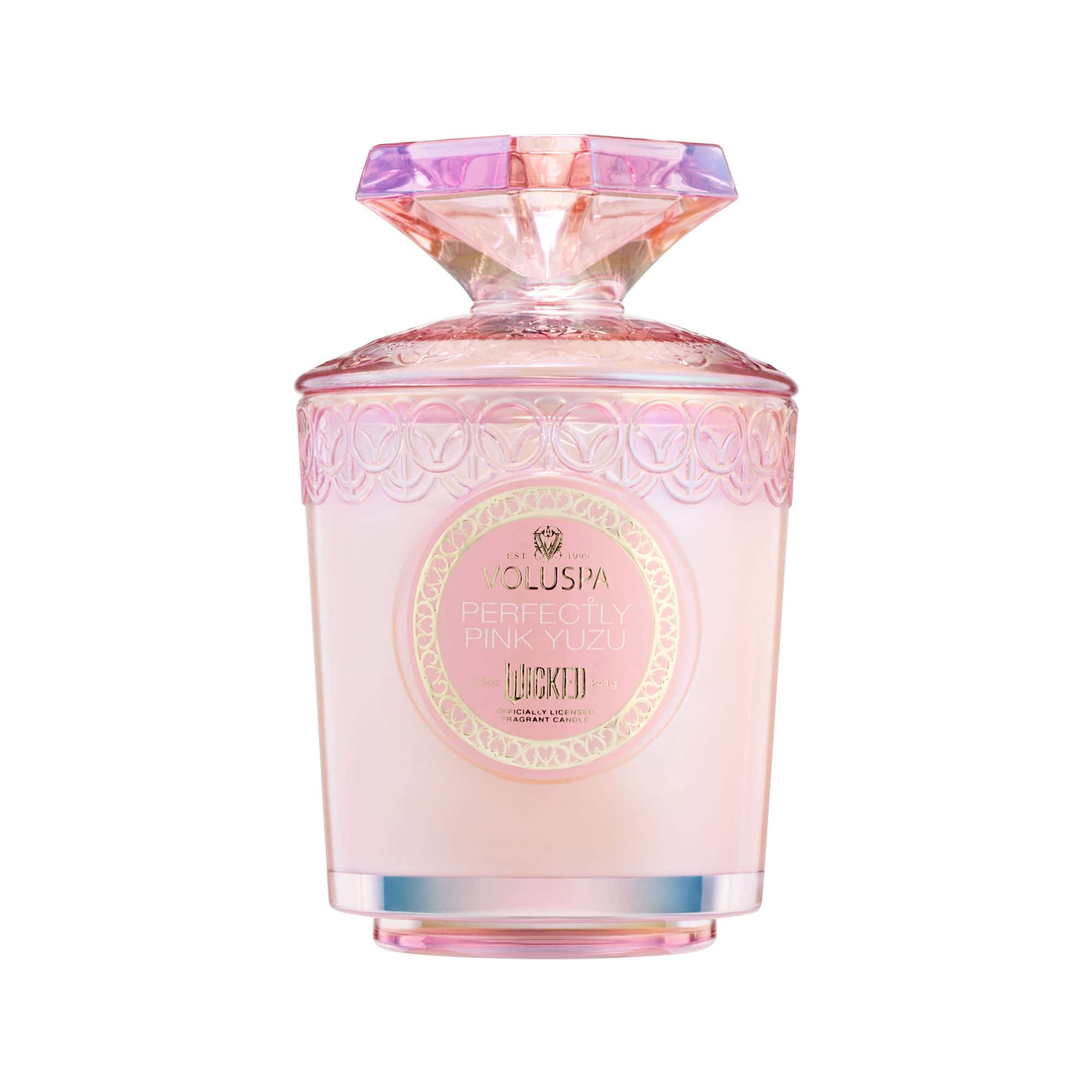 You've been Galinda-fied by a Perfectly Pink Fragrance that will thrillify the senses and captivate the room. Spells of Perfectly Pink Yuzu, Sparkling Sea Salt, Candied Flowers and Vanilla Bubbles accessorize the atmosphere. When the room needs a makeover, Perfectly Pink Yuzu takes over.