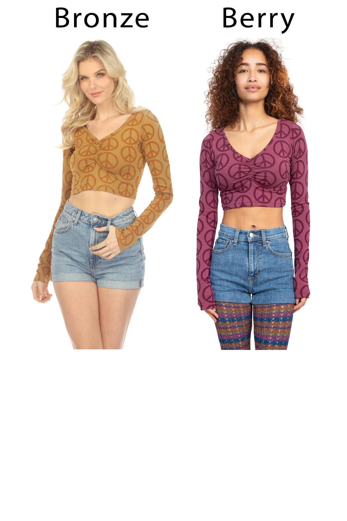 Embrace your inner peace and spread good vibes wherever you go with our Peace Symbol Long Sleeve Crop Top. Shop now and experience the perfect blend of comfort and style!