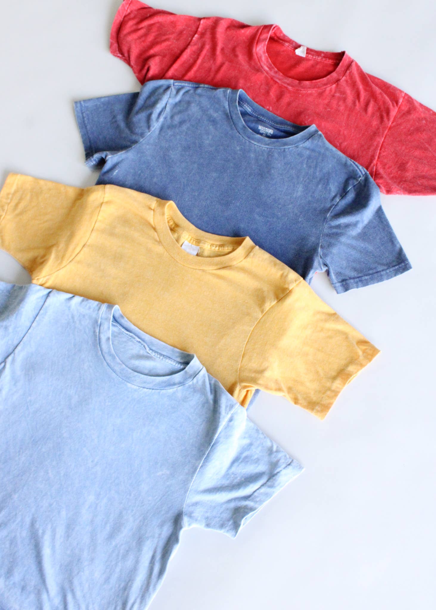 Rediscover essentials, comfort, and your unique look with a hand selected vintage solid tee. Each t-shirt has been selected by hand and acid washed breathing a new life into old garments. Each one is unique, and your shirt will be similar but not identical to the products displayed. Rest assured we will get you a one-of-a-kind acid washed vintage tee that you love.