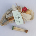 Our Cleansing Ritual - Palo Santo, Selenite, Matches, Oyster Shell - combines elements of water, earth, and fire to provide an opportunity for clearing and renewal.